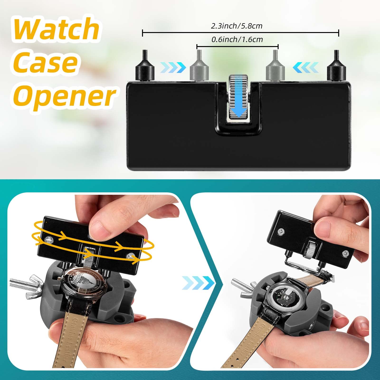 ["2024 Latest watch tool combination: A professional watchmaker tool set and watch case press in one, capable of solving all kinds of watch problems and suitable for all types of watches. Use watch battery replacement set to open the case and replace batteries or parts. Once the problem is solved, reinsert the case back with the watch press. Repairing a watch is just a moment away!","For all types of watch repair challenges: Eventronic watchmaker tool is a collection of almost all tools needed for watch repairs. The pointed knife and watch opener are used to open both types of cases. Watch band tool for adjusting or replacing the watch band. Reinsert with the watch press back into the case (for watches with a diameter of 18-50 mm).","Portable & attractive watch tool: The combined version of watchmaker tools is packed in a fine nylon bag. Of course, this watch tool set can easily be taken anywhere. Made of high-quality 304 stainless steel, these watch tools are very sturdy and the tools are very precise and easy to use. Eventronic watch tools set are ideal for professionals or families and are great to use as a gift for any watch owner.","Complete tool set: Watch opener, 2*spring bar tool, watch band remover with 6*replacement pin, watch case & band holder, tweezers, small hammer, 3*punch pin, sponge block, cleaning cloths, and 54*spring bars. The watch case press comes with 12 dies and has a size range of 18mm-50mm and with two special dies. We also have detailed operating instructions for all tools that anyone can easily understand.","Quality assurance and customer service: As a famous brand of watchmaker tool set, Eventronic has ten years of experience in manufacturing watch tools. Eventronic watch tool set comes with a 24-month warranty."]