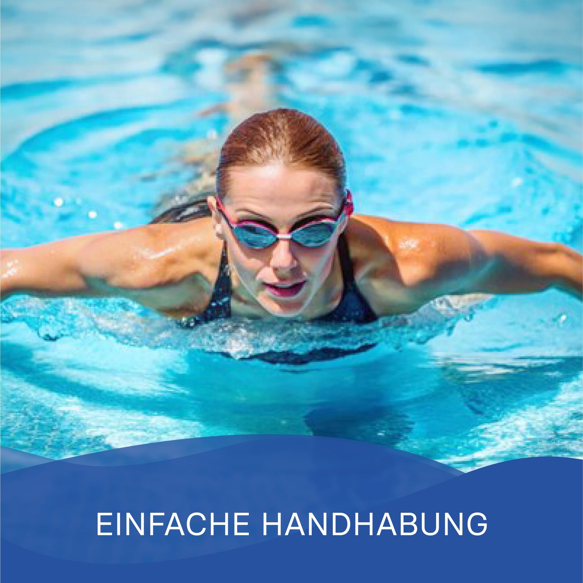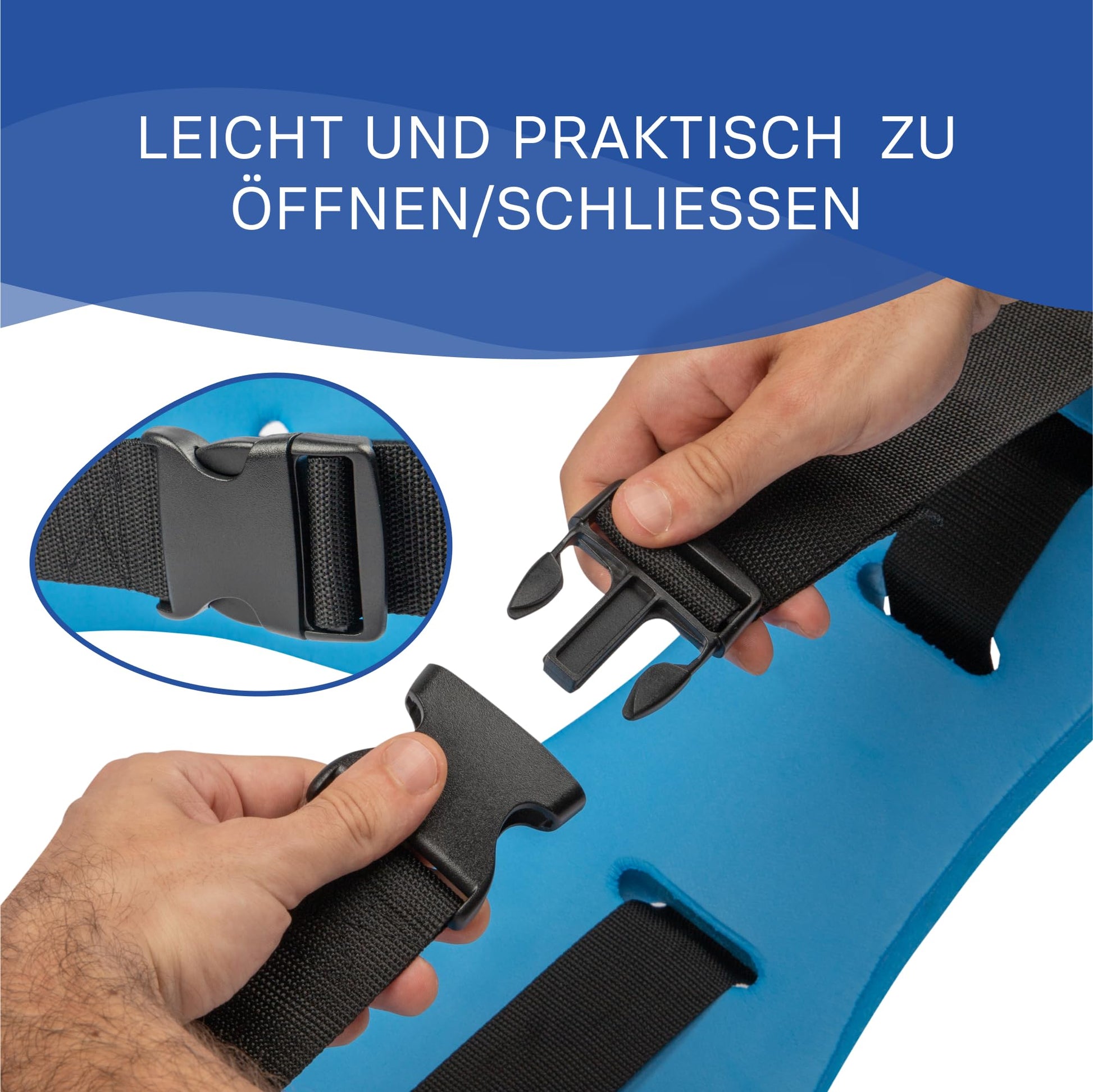 "Easy handling: With the help of the secure snap closure with innovative quick release, the swim belt is quick and easy to put on.",