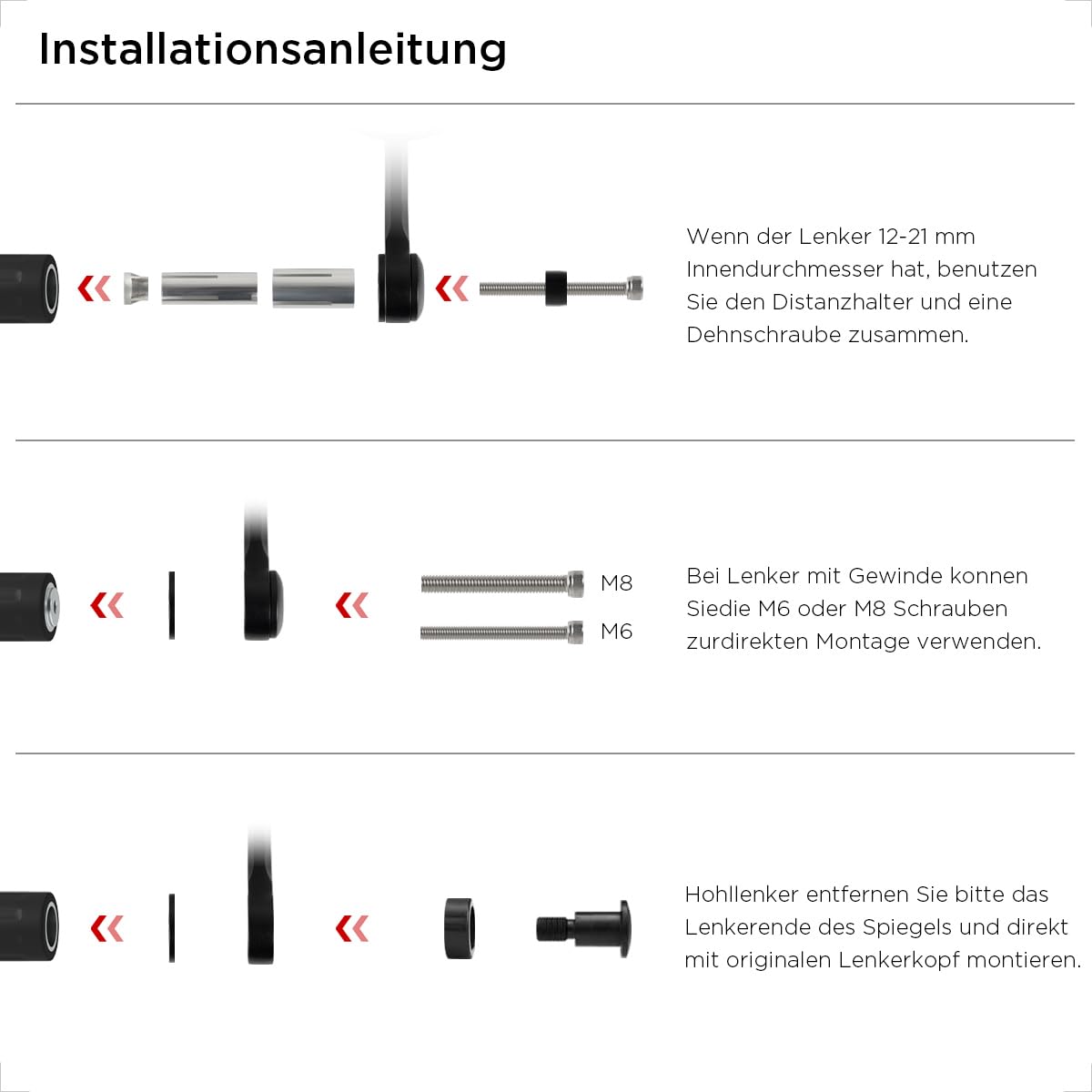 【Easy Installation】If your handlebar has threads at the ends, you only need to screw the screws into the holes; some models may require slight modifications. If you have any questions about installing the motorcycle handlebar mirror, we are happy to help."