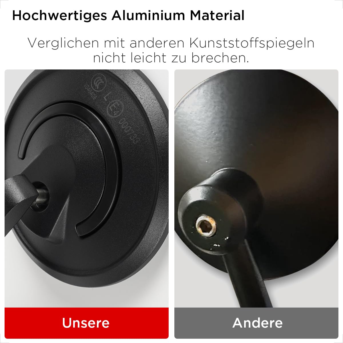 【Stable and Durable】The housing of the side mirror and the stem are made of strong and durable aluminum alloy, heavy and can replace the balance block to make the handlebar more stable.