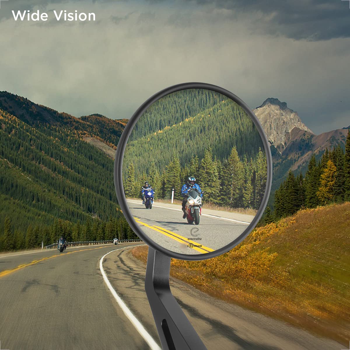 Evermotor Universal CNC Handlebar End Mirror Motorcycle, Motorcycle Mirror Rearview Mirror E9 Approved, 360° Rotatable Handlebar Mirror Compatible with Quad Scooter ATV Moped