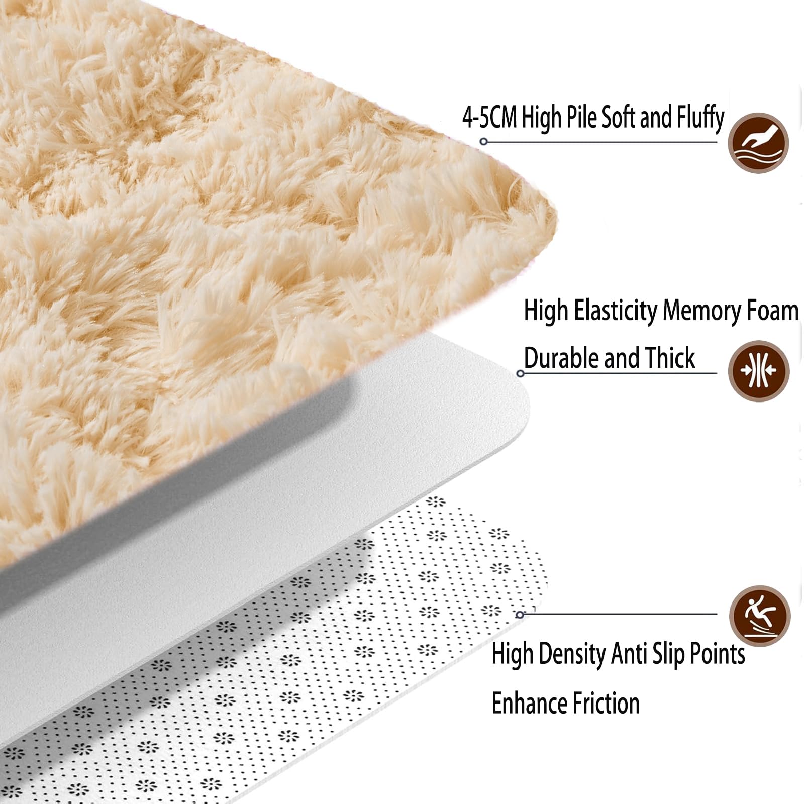 "Soft and Durable: The plush rug is about 1.6 inches high, with a soft, dense, and long pile surface, a sponge middle layer, and a high-quality fabric on the bottom that is soft, comfortable, durable, and resilient. The fluffy rug is made of 100% non-toxic materials, safe, skin-friendly, odorless, and not easy to fade, providing a safe and comfortable children's play mat for you and your child."