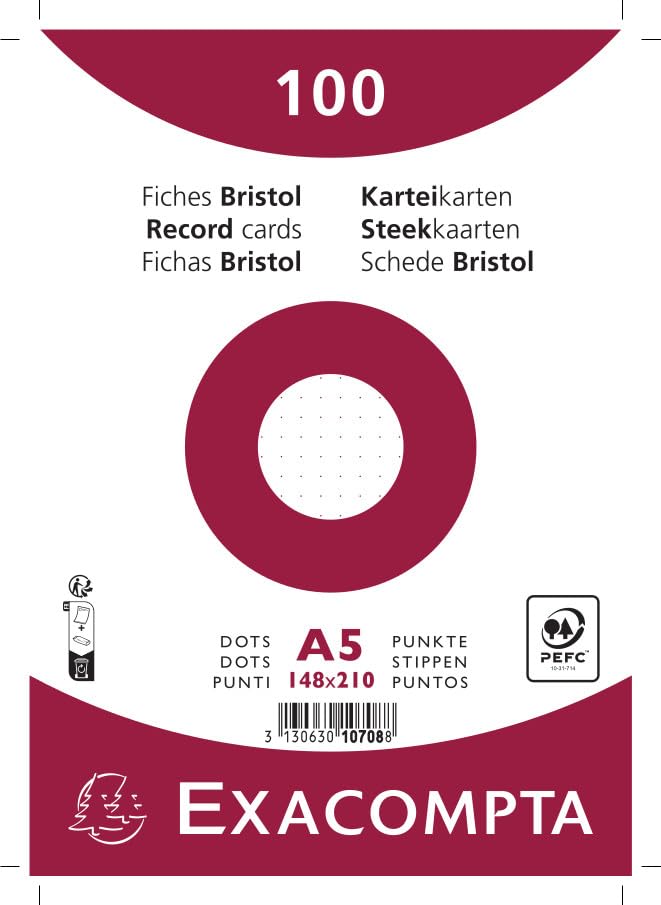 Exacompta 10708E 200 pack of index cards dotted DIN A5 ideal for school, for learning vocabulary flashcards memo study cards study card index 148 x 210 mm white