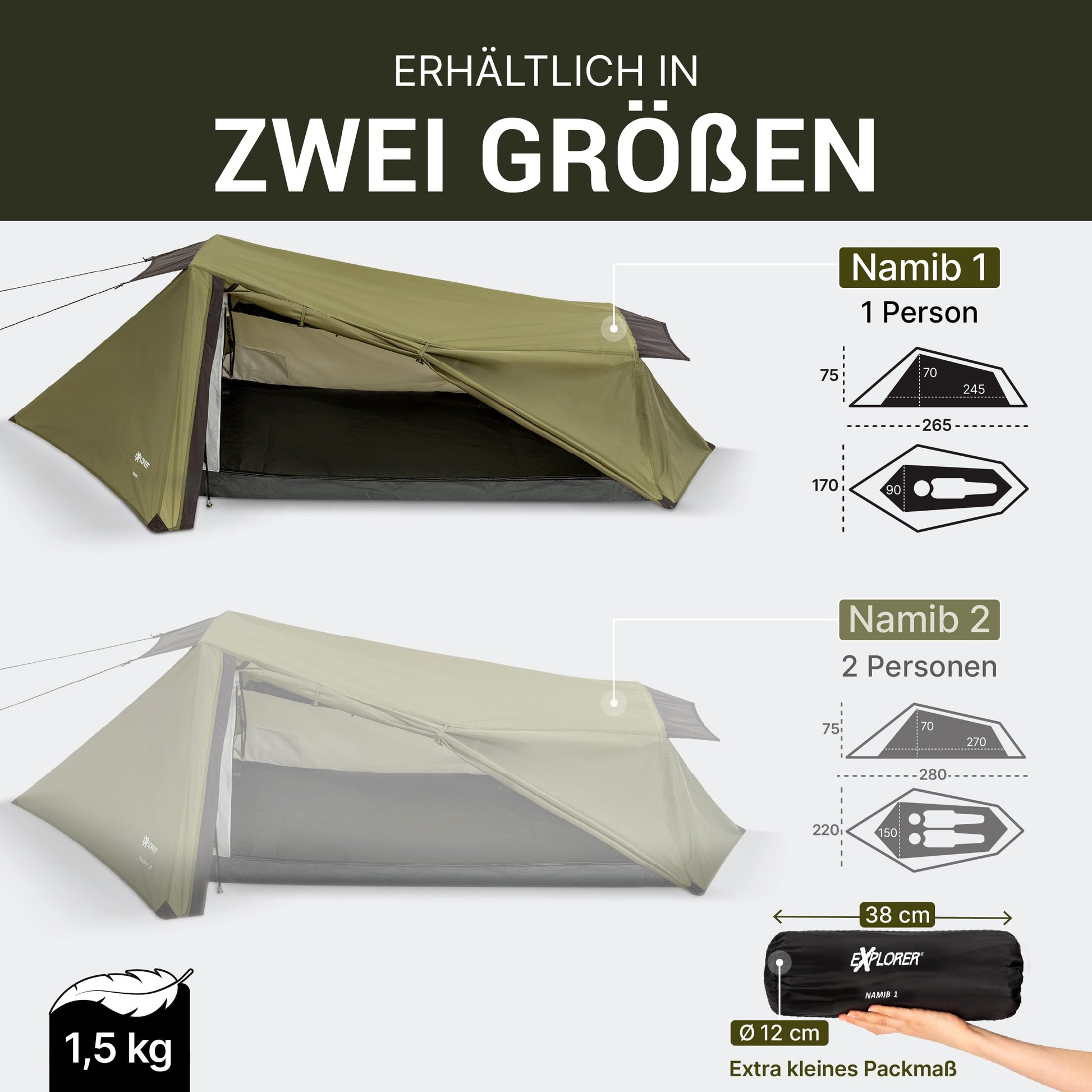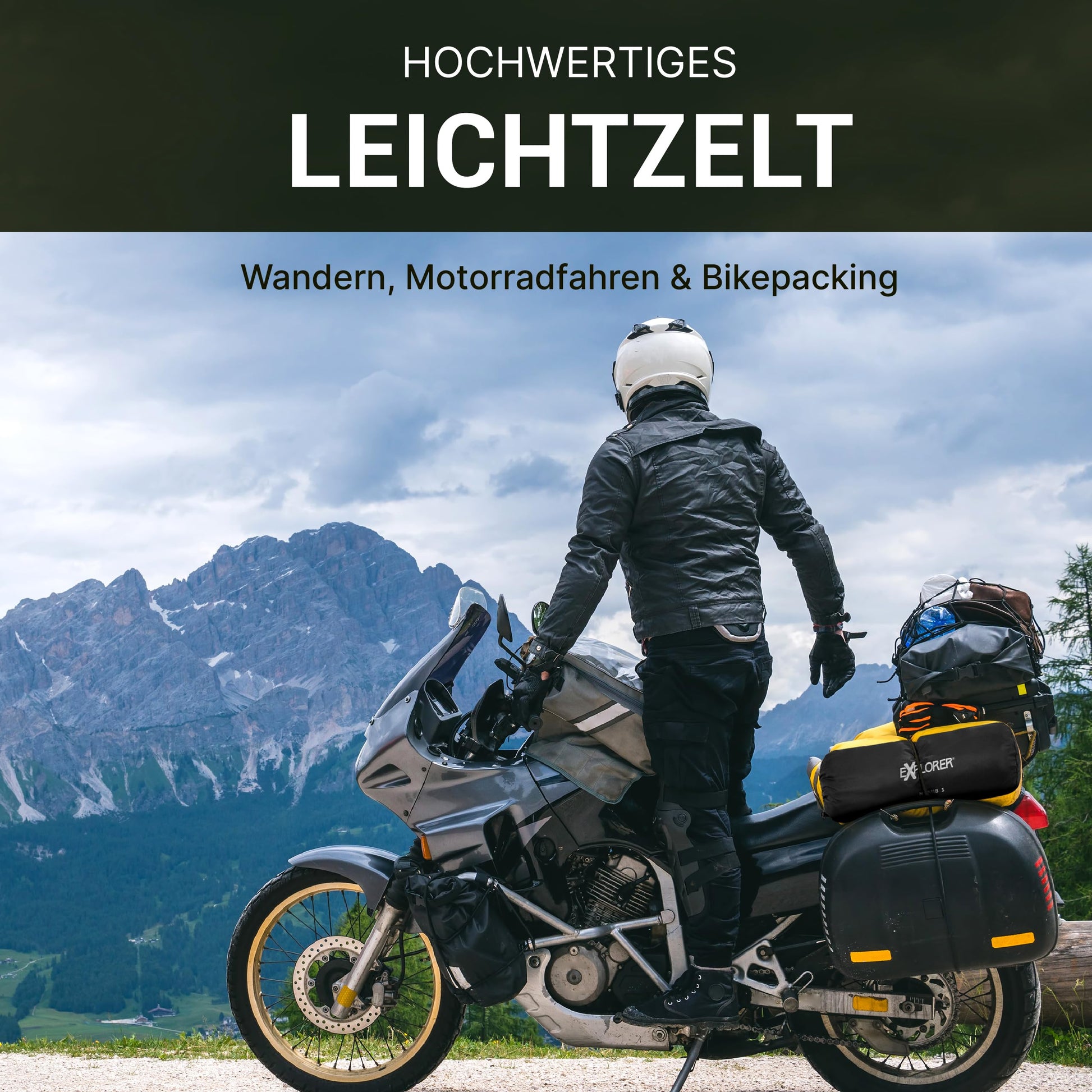["[Ultraleicht & Kompakt] – With only 3.3 lbs Weight and a small Pack size of 12 × 38 cm, the tent is ideal for Solo Adventurers. Perfect for Motorcycle & Bicycle Tours – lightweight, space-saving, and easy to carry! (1 Person Tent) includes Tent Pegs and Reflective Guy lines","[Ideal for Unterwegs] – Well-designed with quick setup and compact pack size – perfect for Motorcycle, Bicycle, and Trekking Tours. Takes up minimal space and is ready to use in minutes – for spontaneous camping wherever you want!","[Wetterfest & Zuverlässig] – The 3000 mm Waterproof, durable Nylon and the Waterproof PE Bottom keep you dry even in heavy rain. Rain-protected ventilation ensures a comfortable climate and prevents condensation.","[Flexibel mit Separatem Innenzelt] – The Inner tent is stand-alone and can be used without the outer tent – perfect for warm nights under the stars, protected from insects. You decide how to use your tent!","[Windstabil & Robust] – The flat Bow construction reduces wind resistance, while sturdy Fiberglass Poles, Dyneema Guy lines, and Clamcleat Spanners ensure a secure stance – even in bad weather! Note: Tent must be staked. Standing without pegs not possible."]