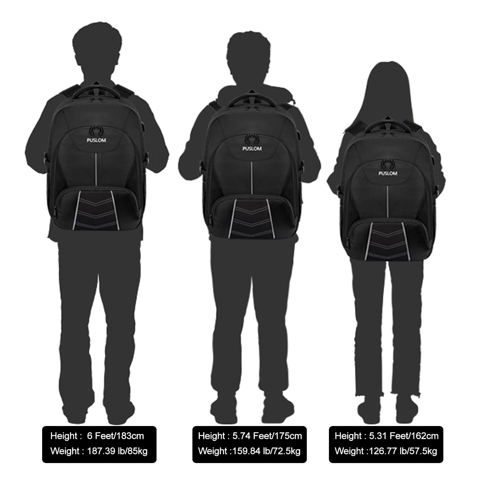 DURABLE & COMFORTABLE - The 18.4-inch laptop backpack is made of high-density, lightweight and durable, odorless, water-resistant polyester material with waterproof zippers. It is a very sturdy, tear-resistant backpack. The soft, multi-layered, ventilated sponge padding provides you with maximum back support. Wide, breathable and adjustable shoulder straps relieve shoulder pressure. A sturdy handle with foam padding for long carrying times."