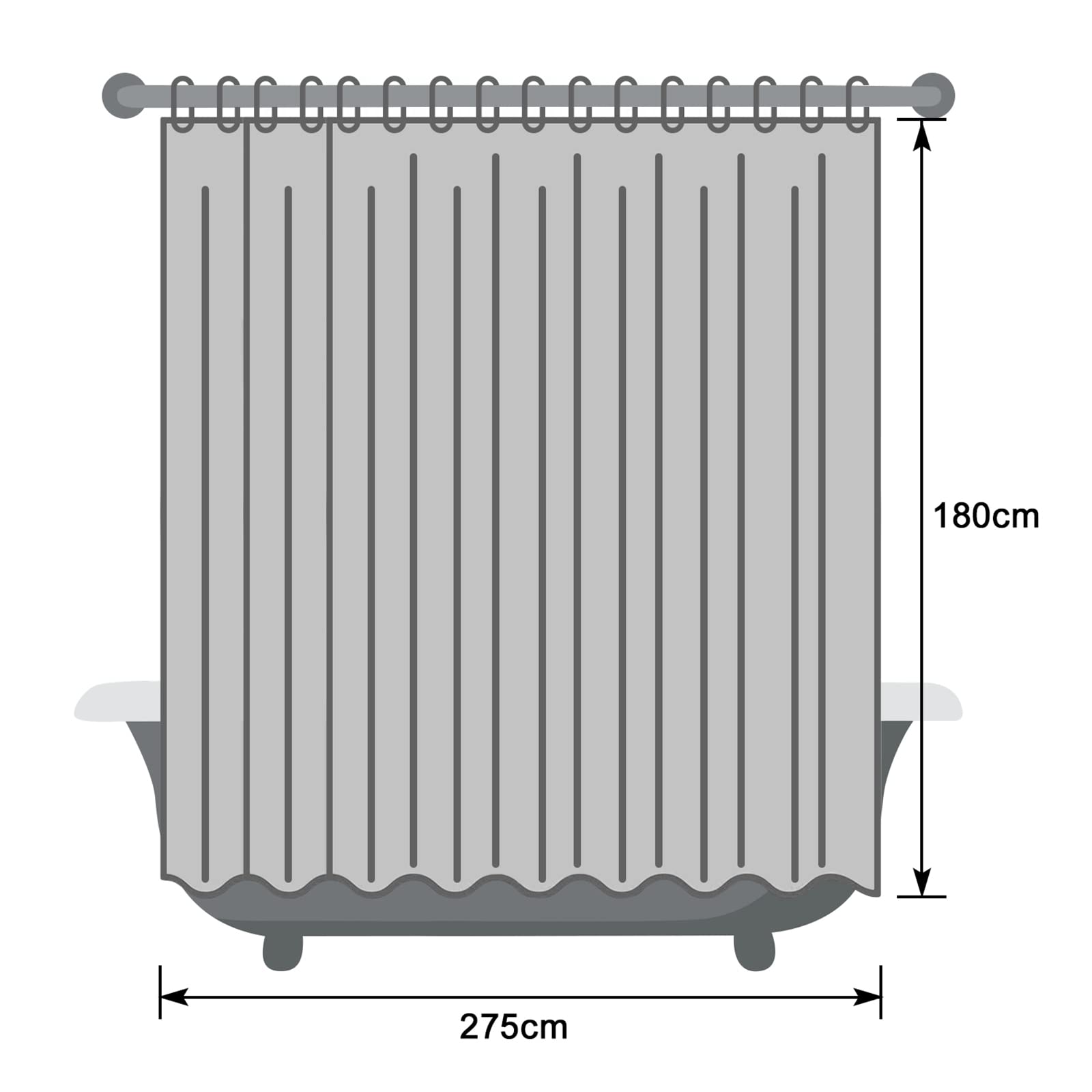Extra wide white shower curtain 275 x 180 Textile polyester fabric shower curtains, waterproof washable anti-mold bath curtain with 18 rings