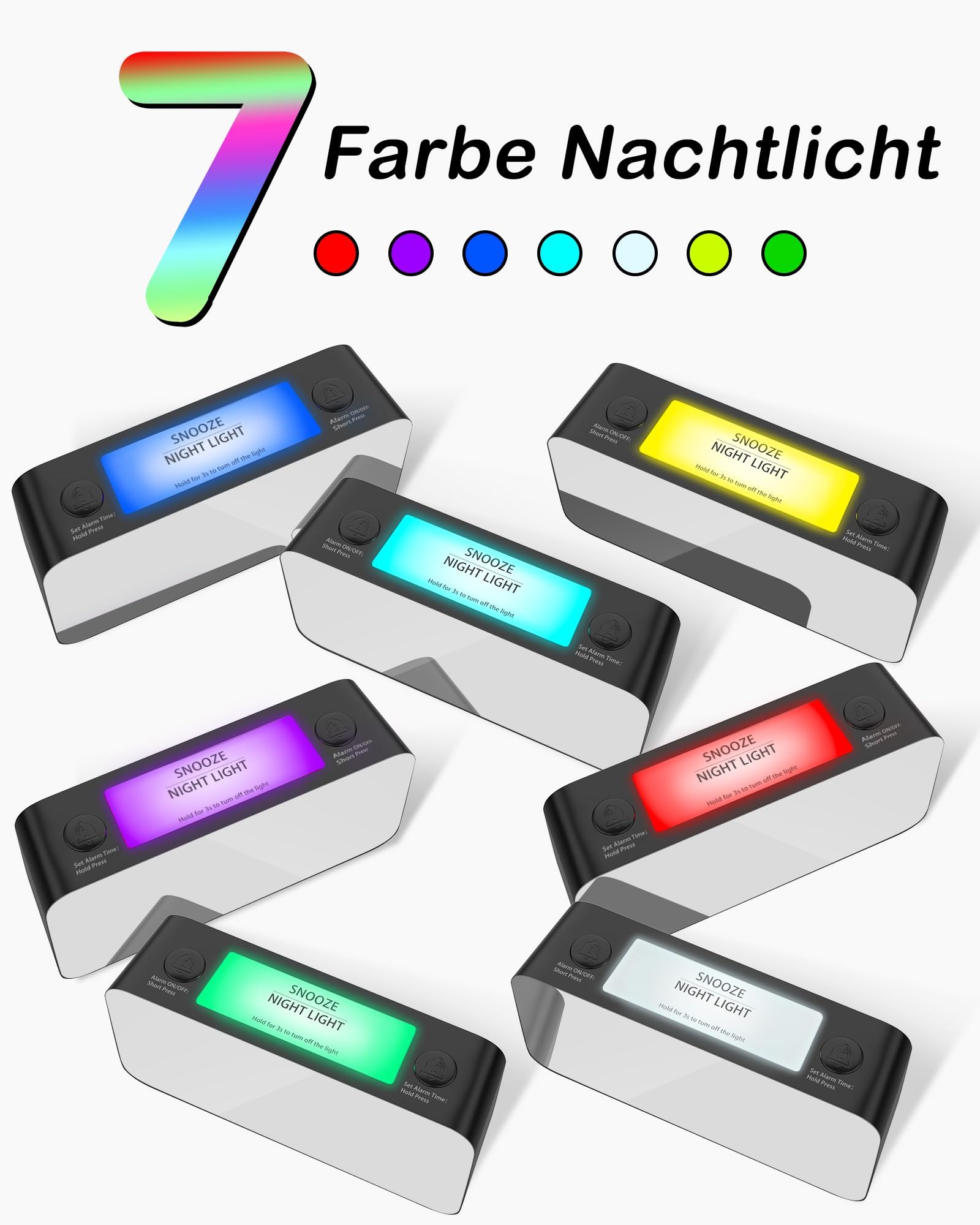 "7-Color Night Light and USB Charging Ports Built-in USB charging port for mobile phones or headphones is a handy bonus that eliminates the need for additional sockets near the bed. The rainbow alarm clock also features a 7-color night light that can be turned on by tapping the top button. Upgraded with a Type-C charging interface, you can easily replace the charging cable if you have lost or broken the original cable."