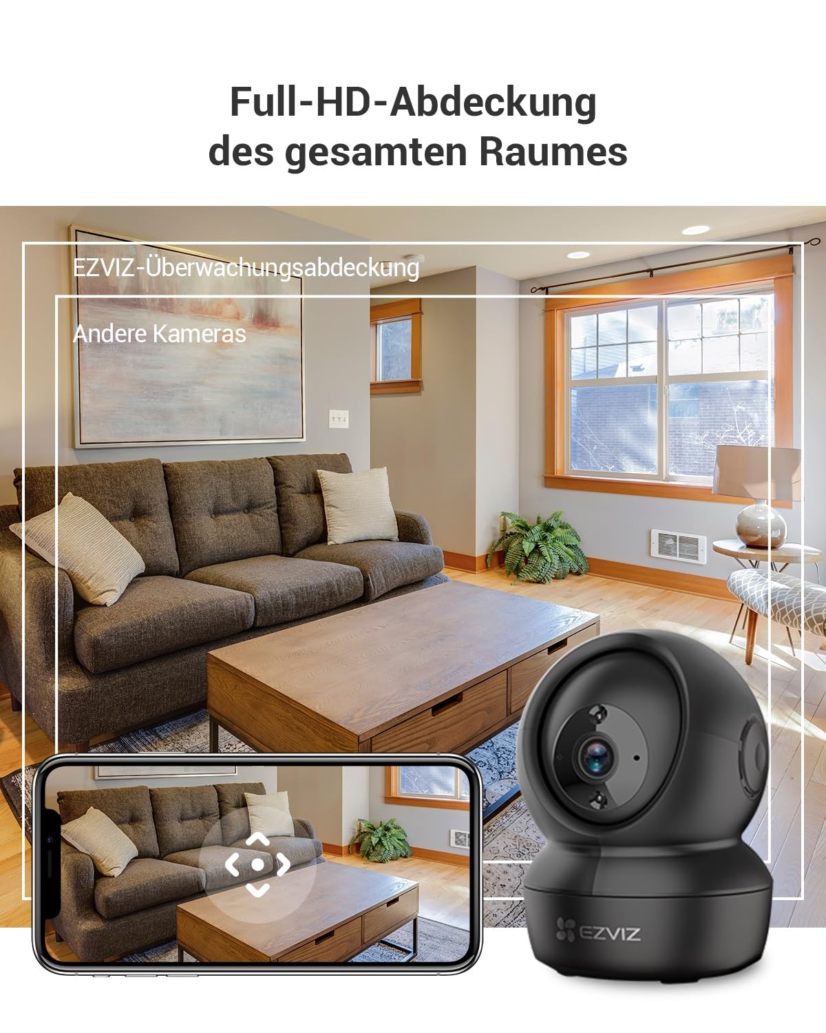 EZVIZ 2MP WiFi IP Camera, PT Indoor Surveillance Camera with Two-Way Audio, Motion Tracking, IR Night Vision for Pets, Dogs, Baby Monitor Compatible with Alexa, C6N Black, 1080p
