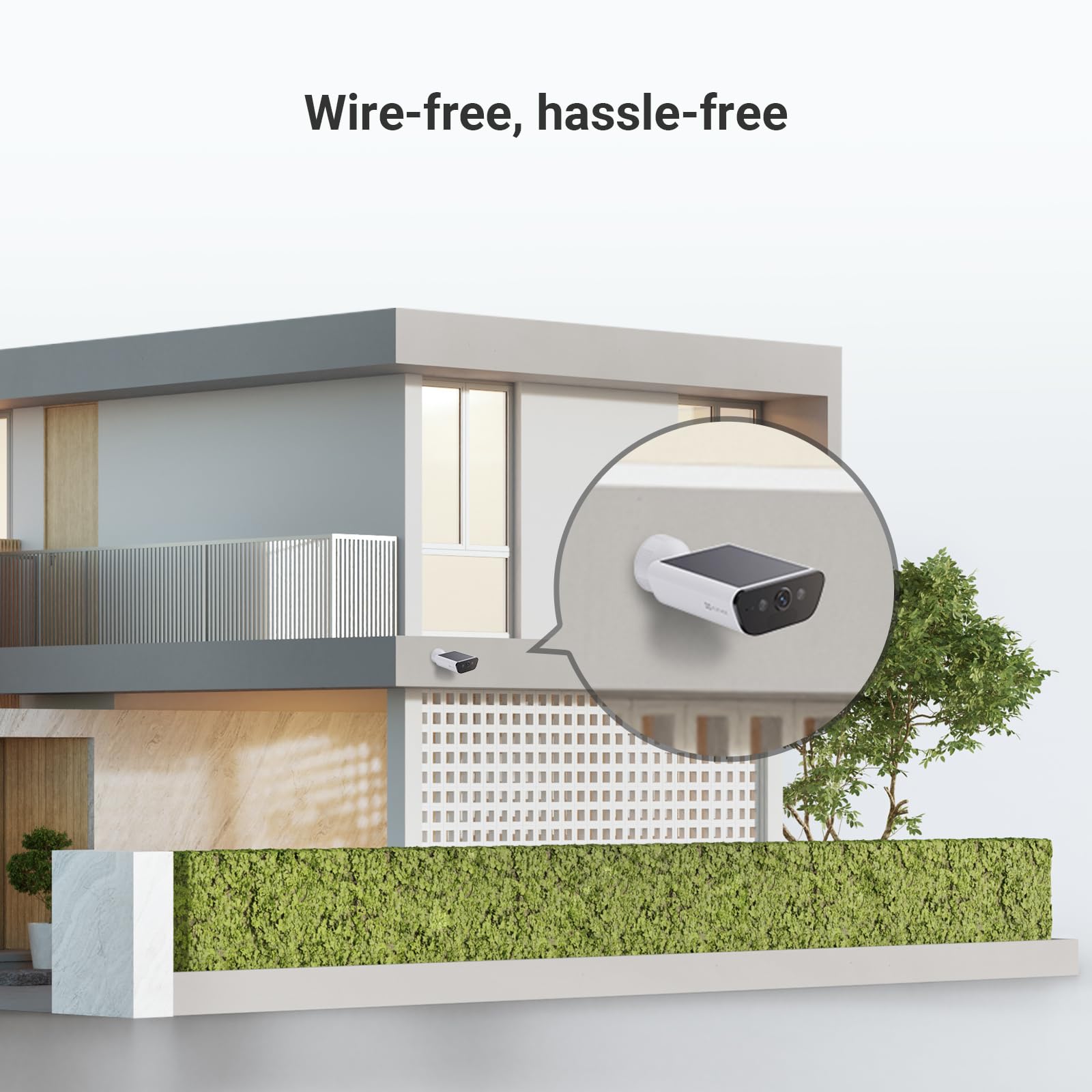 ["Wireless and waterproof: This wireless outdoor camera is easy to install – no wires, no hubs, and no additional solar panel. With a sturdy, weatherproof housing, you can always rely on its performance in rain, dust, and snow."]