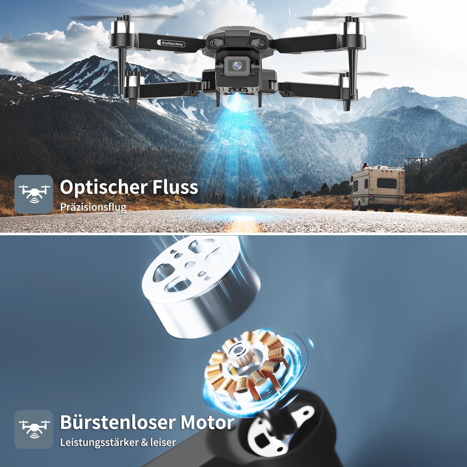 ["2.4 GHz transmission: Watch live footage of your camera drone over 2.4 GHz Wi-Fi. Control the angle of the micro drone and record footage directly on your mobile phone. Thanks to smooth transmission, you can track fast movements without delay.", "Auto Hover: Camera drone locks altitude using optical flow. The quadcopter drone can hover indoors and avoid collisions. With auto-balance function to ensure the safety of beginners.", "Multifunctional drone: Wave your hand to take photos and the drone responds immediately. Sync the adult version of the drone with VR goggles to enjoy an immersive experience. Tilt your smartphone to control the beginner version of the drone during flight.", "Foldable drone: Place the drone in the included storage box. The battery of the kids' drone can be replaced in seconds. Can be used immediately for hikes, picnics, or garden games.", "Beginner-friendly: Tap to start/land your camera drone. Set the drone's flight path with waypoints or rotate the drone with a single 3D flip for a 360° view.3 speeds for professionals and beginners."]