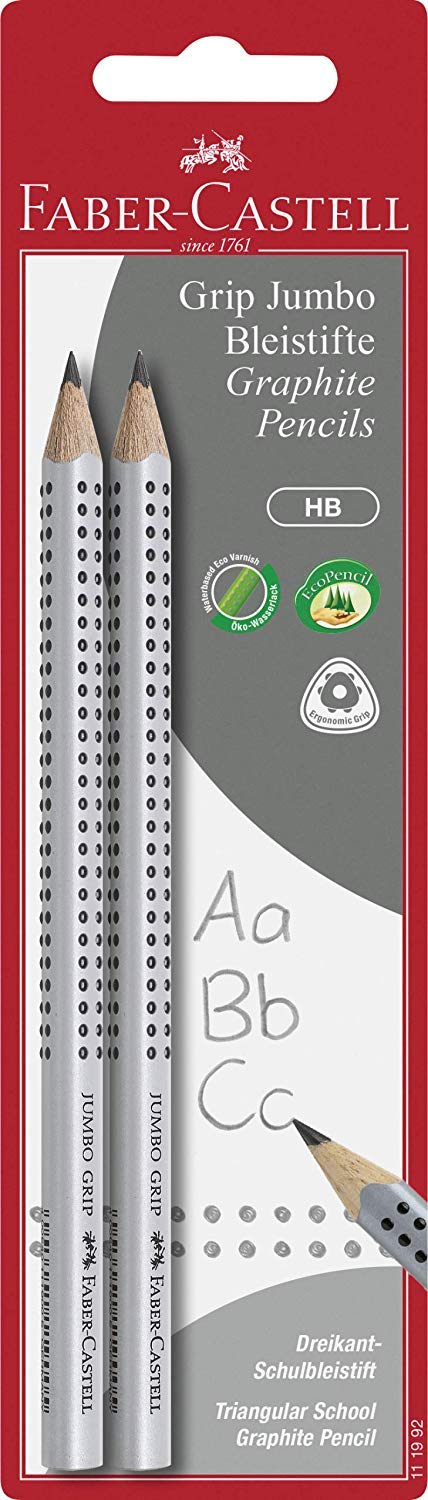 Faber-Castell 111992 - Pencil Jumbo Grip HB (2 pencils Jumbo + eraser + sharpener) (with sharpener + eraser, silver, 4 pencils)