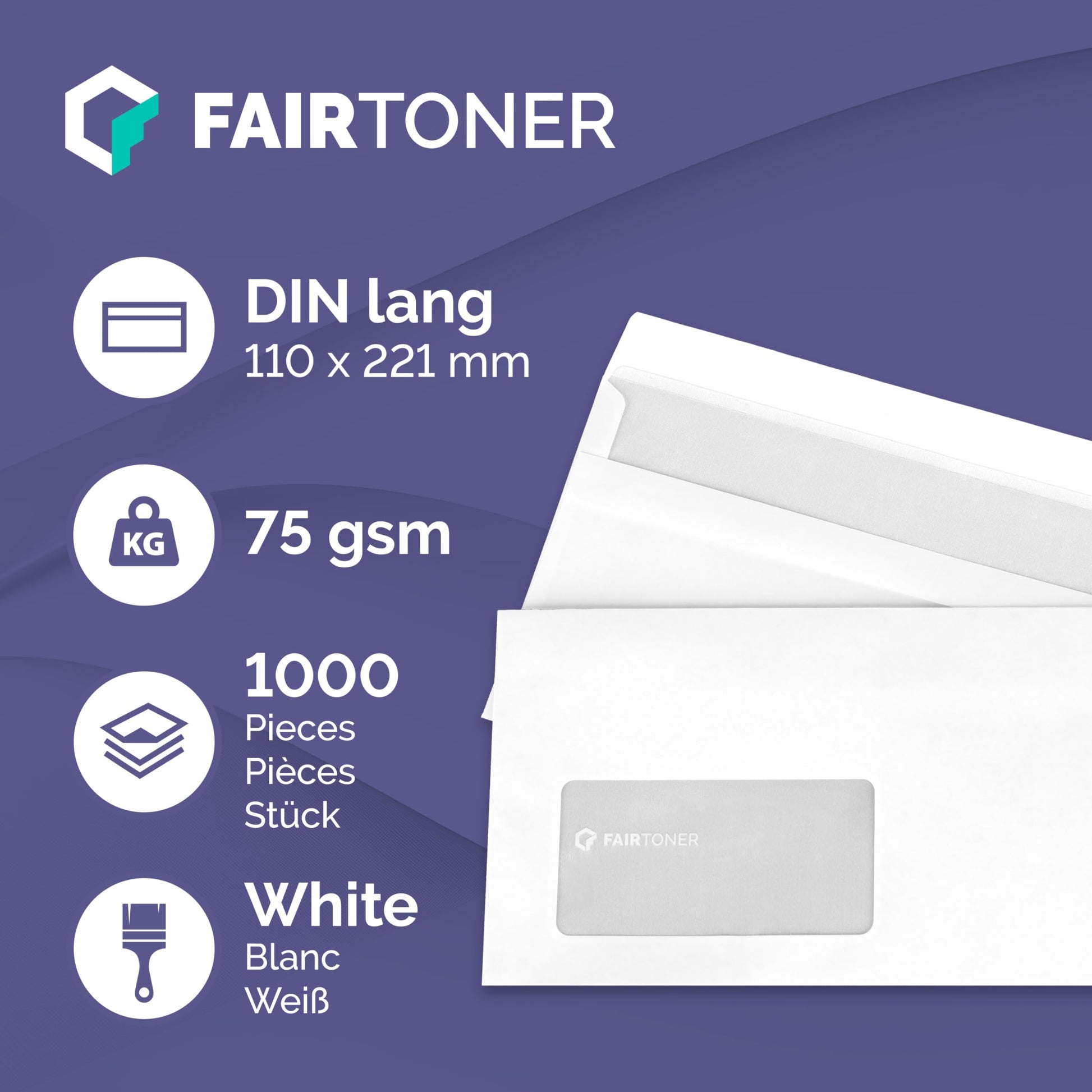FairToner DL envelopes with window (1,000 pieces) self-adhesive, window envelopes 22 x 11 cm white