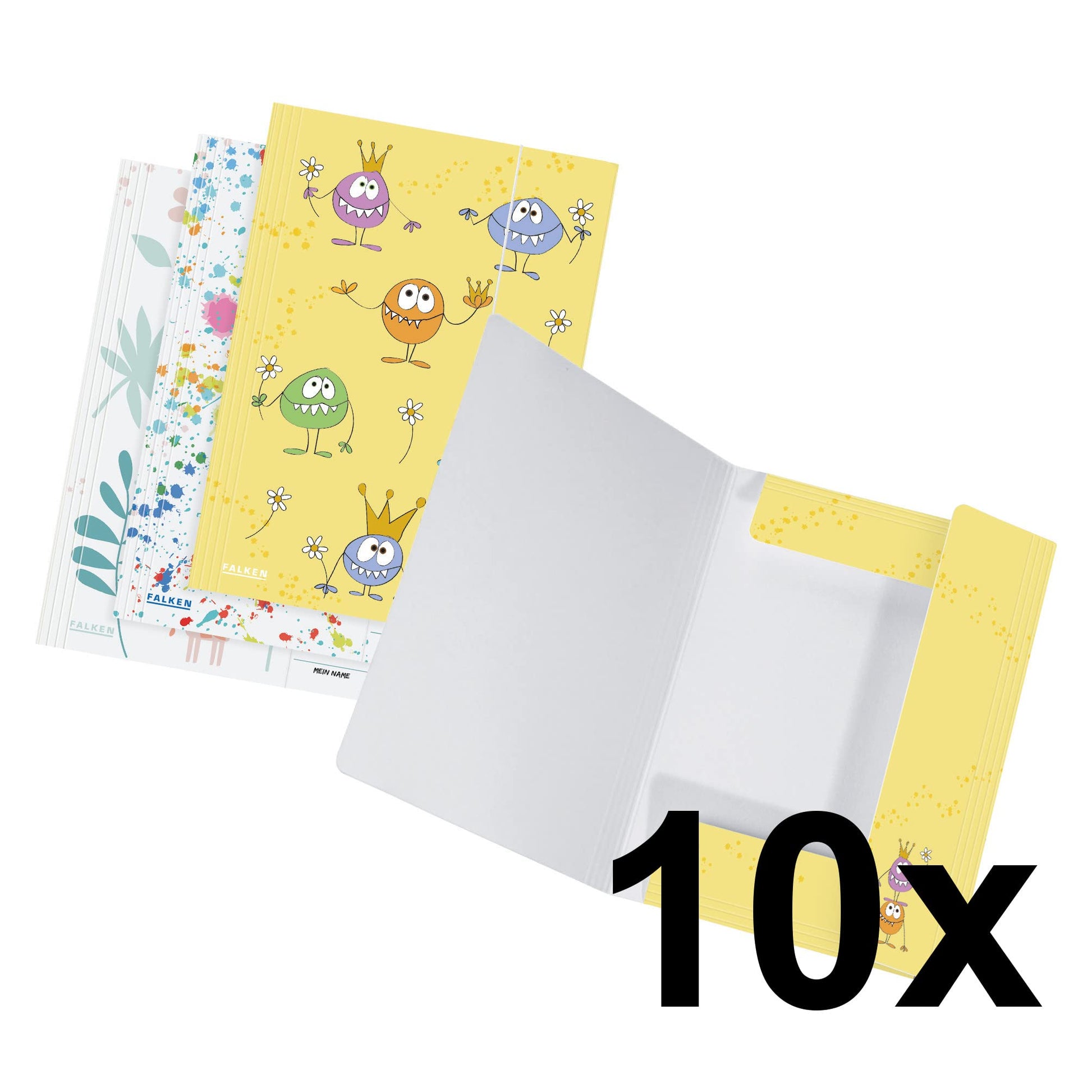 Falcon 10-pack folder for kids. Made of extra strong cardboard with 3 flaps and elastic band to store A3-sized artwork. Perfect storage folder for school.