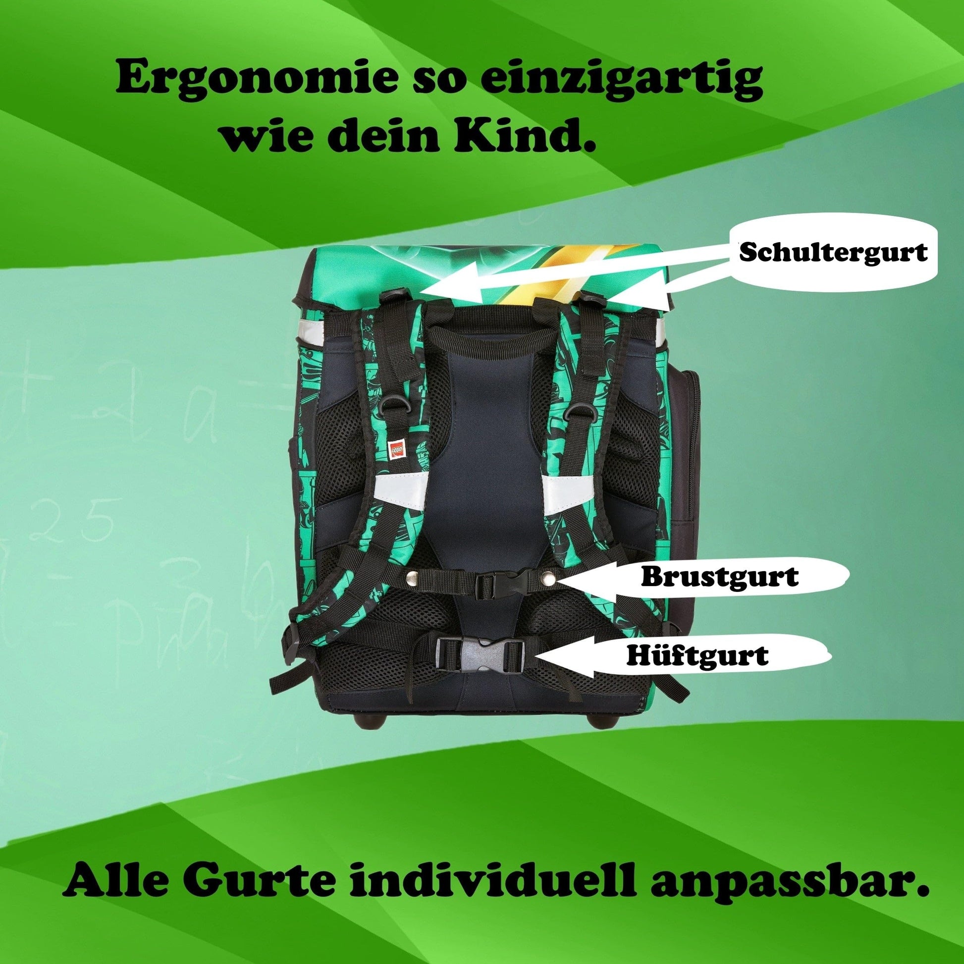 Familando Ninjago school bag set for boys with school cone 85 cm and gym bag - ergonomic, sturdy - 16 L volume, water repellent - With chest and hip belt - Complete set for 1st grade elementary school.