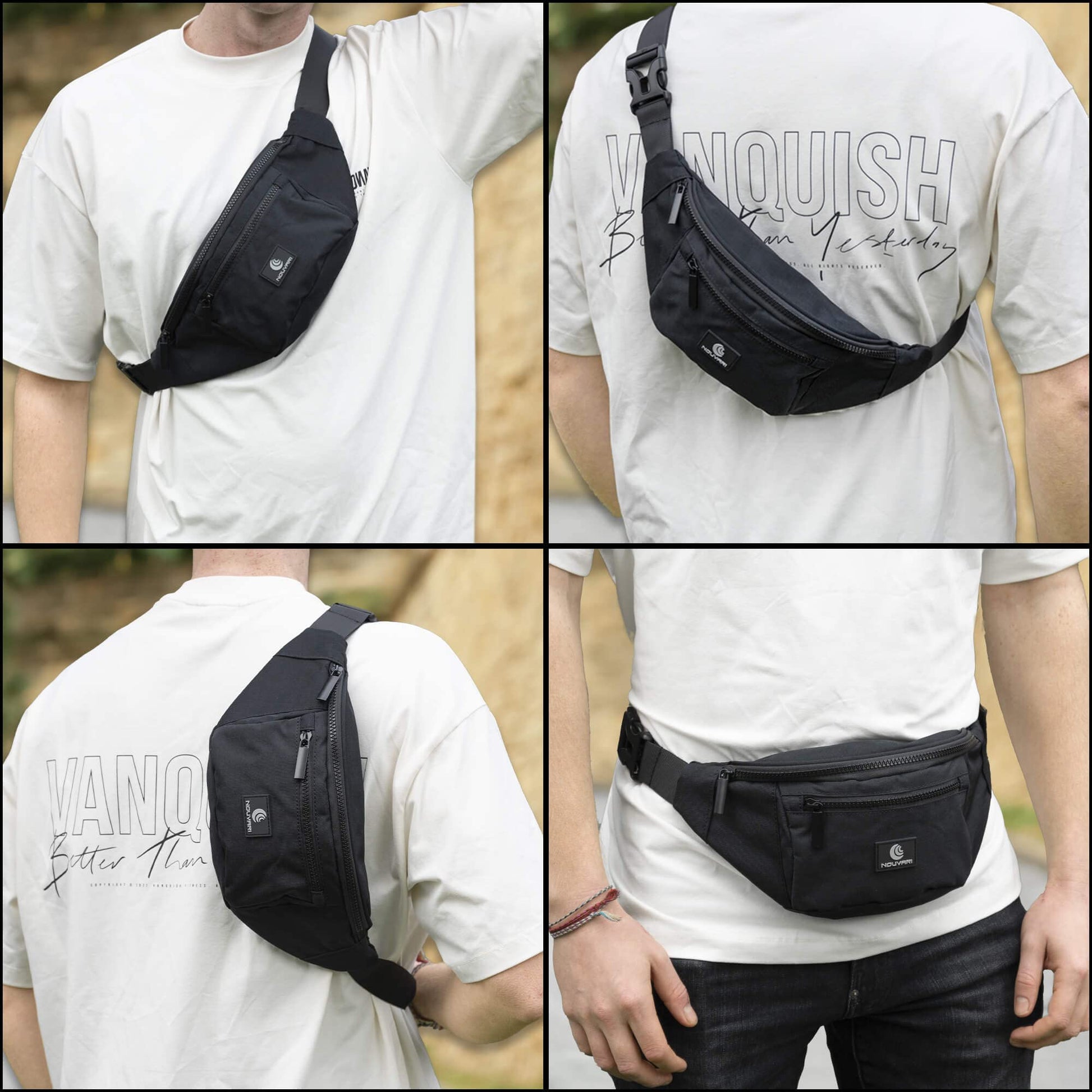 "Space wonder: The hip bag "NOAH" offers plenty of room for all your belongings you carry with you: phone, wallet, keys, passports, headphones, and more. The fanny pack with four pockets provides great security for your items.