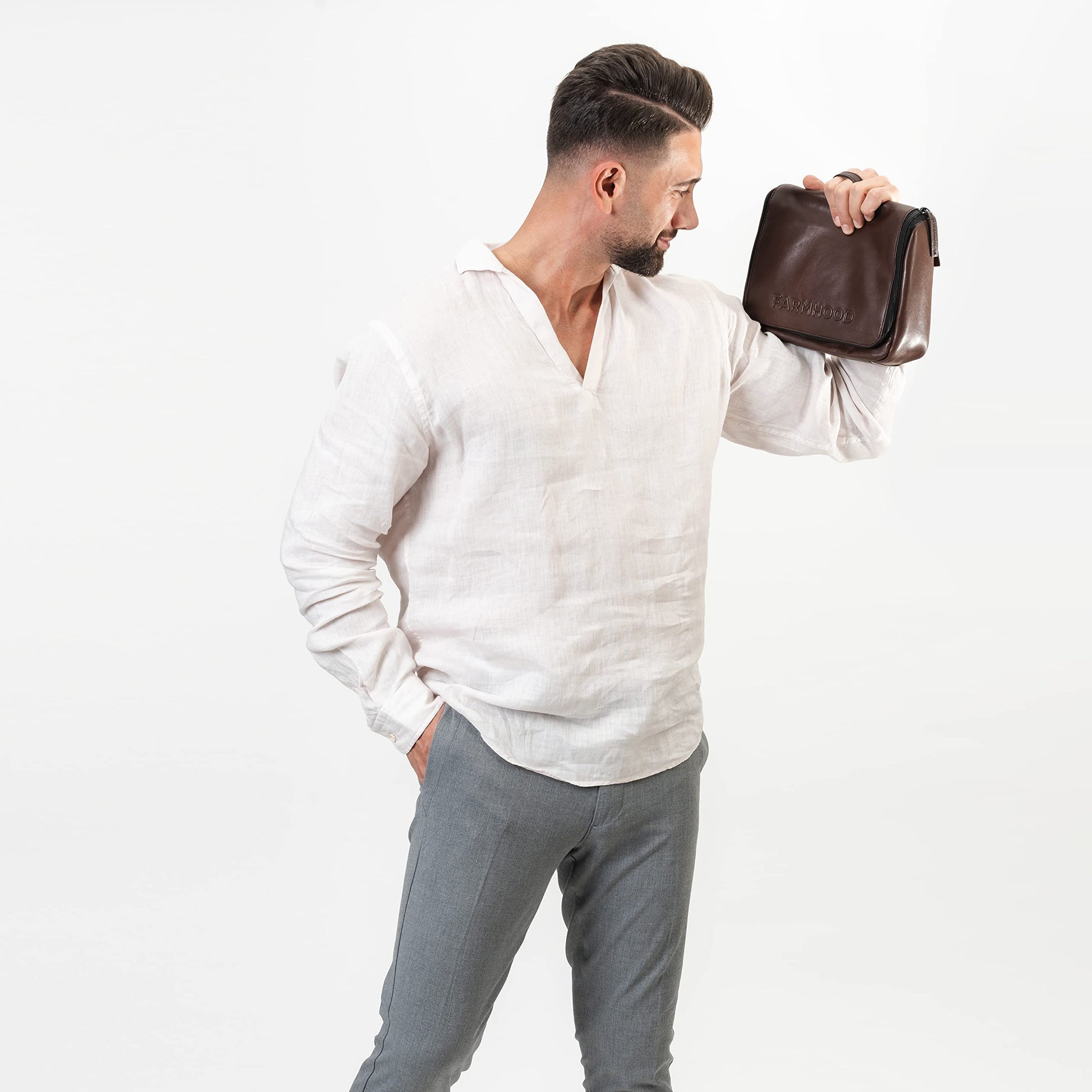 HIGH-QUALITY: The toiletry bag is handmade from high-quality cow leather. The material is robust and dirt-resistant. The logo ensures a beautiful & timeless design.