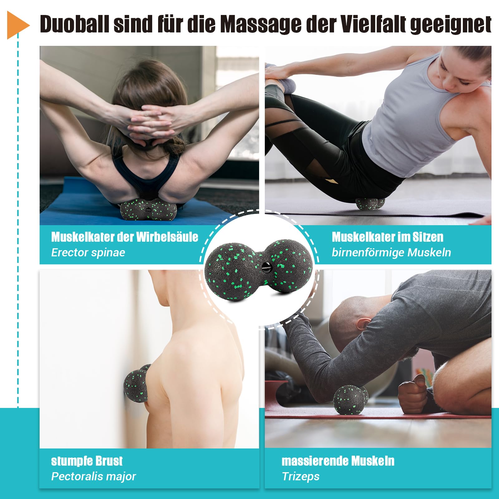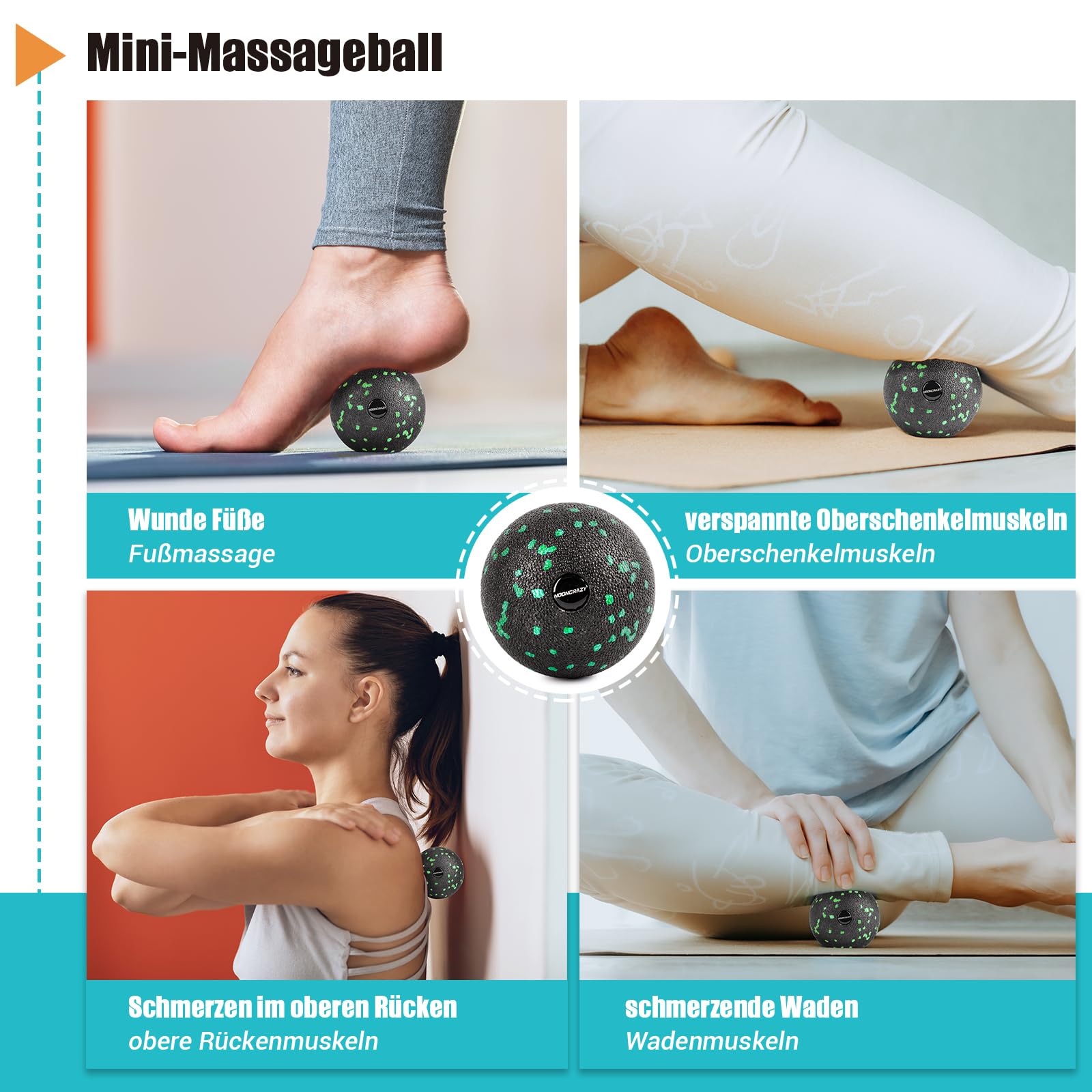【100% Satisfaction】Our fascia ball set includes 1 standard fascia roller (33*14cm), 1 mini fascia roller (15*5.5cm), 1 fascia ball (8cm), 1 Duoball (16*8cm), 1 color German-language poster (28.5*42cm), and 1 product manual. The poster contains dozens of massage movements so that you can massage effectively and target specific areas. If you encounter any problems while using the product, contact us and we will help you solve the problem within 12 hours."