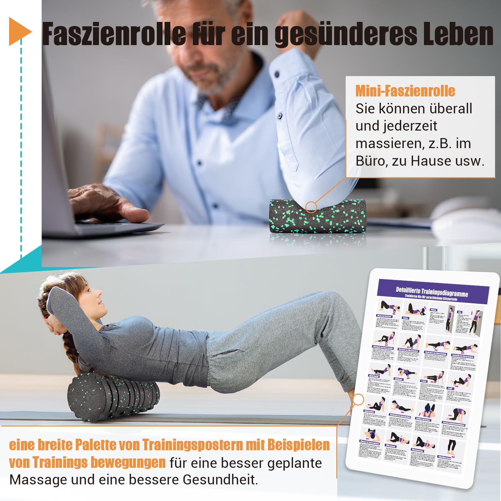 【Well-made fascia set】Made of high-quality polypropylene foam (EPP), this product is environmentally friendly and of high quality. These rollers also have high stability, light weight, and medium hardness. Thanks to the dirt-repellent and moisture-resistant material, the fascia roller set is particularly easy to care for and easy to use.