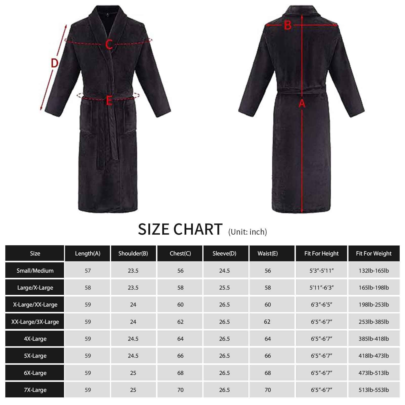 ["【Full Length Big & Tall Bathrobe】FashGudim Men's Fleece Bathrobe is made of 100% polyester, it is medium thickness, feels warm and cozy. Our long robe for men has a length between 57 and 59 inches, which can insulate your body from the winter cold while enveloping you in incredible softness, perfect for snuggling before bed or lounging around the house.","【Two Large Front Pockets】This big and tall bathrobe for men has large pockets on each side, perfect for storing your phone, keys, bottle opener, TV remote, or other essentials. You can also use these two pockets to keep your hands warm in winter, very convenient and practical.","【Inner and Outer Closure】FashGudim Men's Plush Bathrobes have tie belt closures inside and detachable belt closures outside to prevent your men's bathrobe from slipping when lying down or sitting. It can provide better privacy protection, so you don't have to worry about any activities.","【Vacuum-Sealed Packaging】To reduce packaging waste, better protect the environment, and pass the cost savings on to you, your FashGudim Men's Plush Robe will be delivered in a protective vacuum-sealed package, so it may be a bit wrinkled fresh out of the package, to better resolve these wrinkles, simply toss your men's fleece robe in the dryer with a damp towel and watch the wrinkles disappear.","【No Shedding & Easy Care】Machine washable. Please wash your long robe for men in cold water and dry on low heat. We have pre-treated the fabric to reduce shedding. You don't have to worry about leaving lint everywhere when laying on white sheets."]