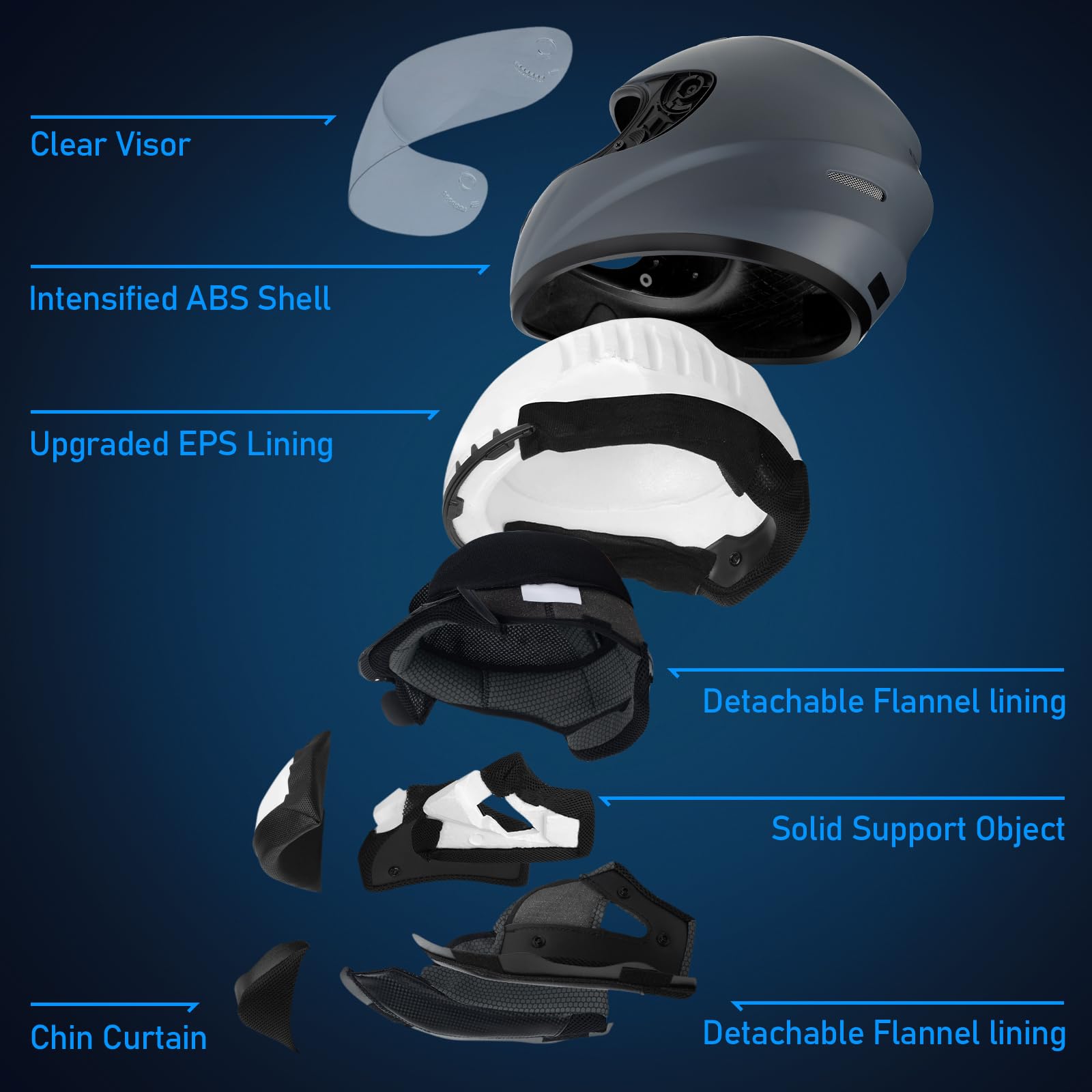Favoto motorcycle helmet Full face helmet for adults, breathable, ECE certified, size S (55-56cm) Grey.
