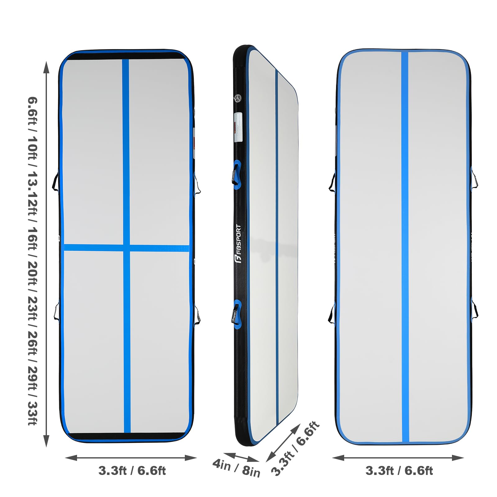 "PERFECT AIRTRACK MAT - Due to careful craftsmanship, this yoga mat has a precise shape and size for versatile use. Our inflatable gymnastics mat is made of PVC fabric, which retains its shape and stability under pressure and impacts to minimize the risk of injury."