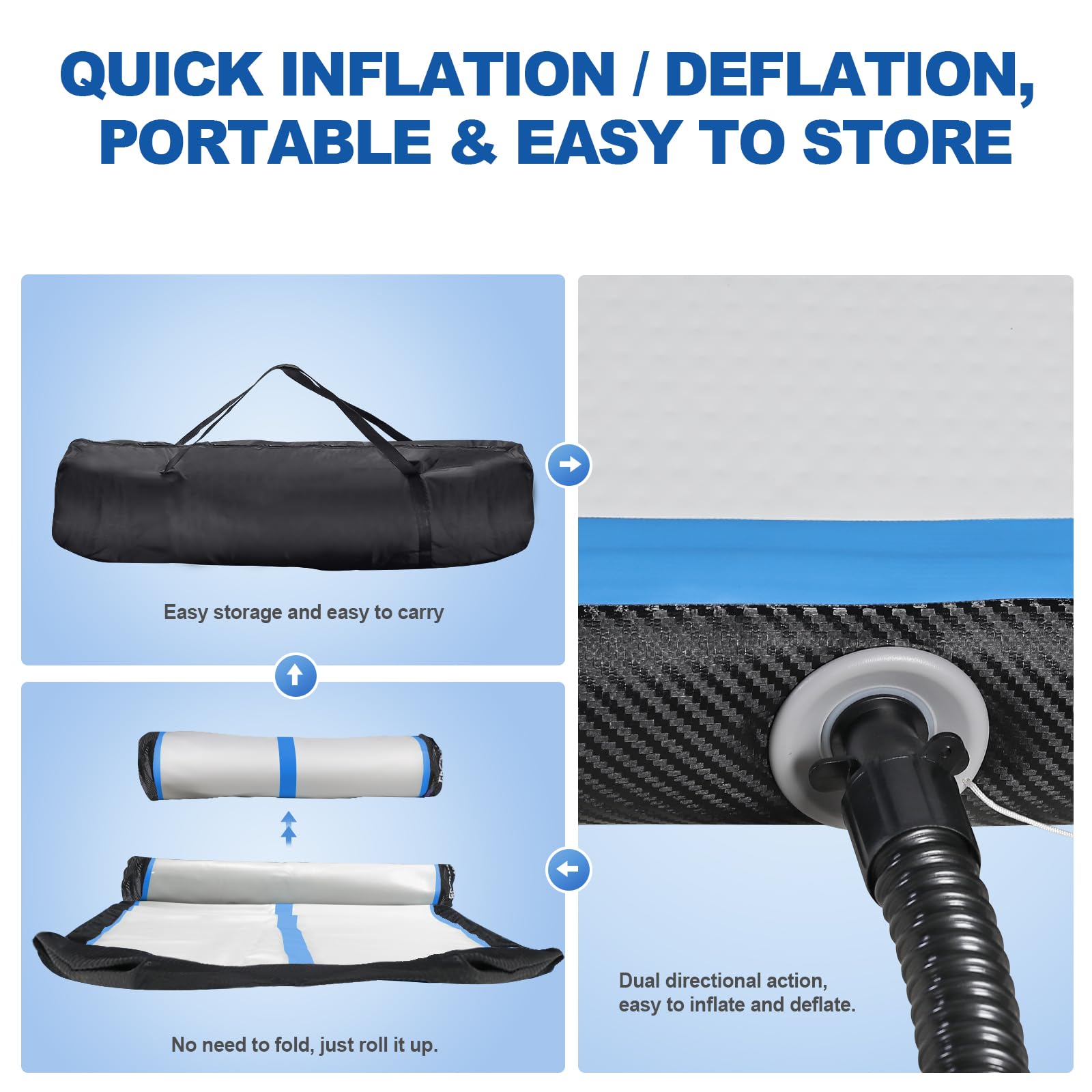"Easy to use: The tumbling mat can be inflated in just a few minutes. Even deflating is quick, without causing much noise."