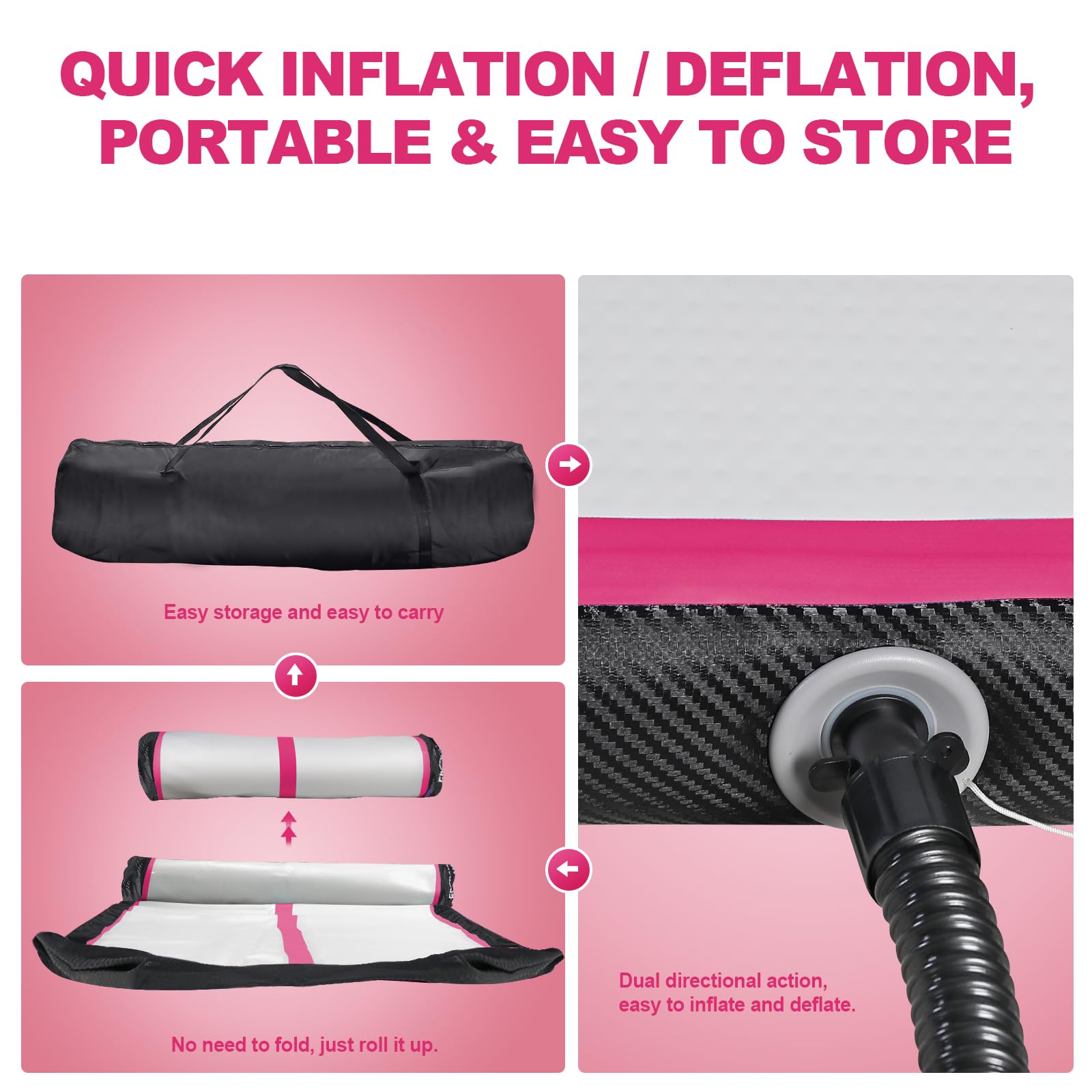 Easy operation: The tumbling mat can be inflated in a few minutes and quickly deflated without making much noise."