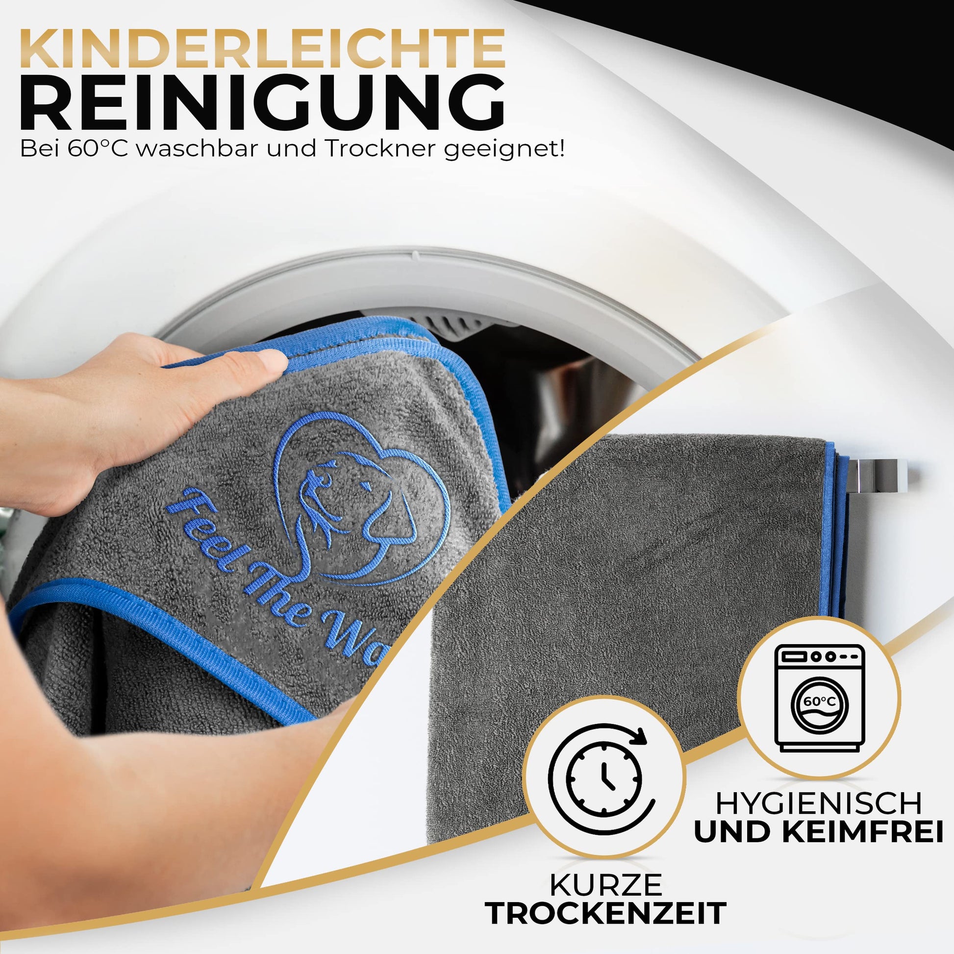 ["🐶EXTENDED SAUGFÄHIGE MIKROFASER: Endlich keine verdreckte Wohnung mehr durch einen tropfnassen Hund. Schmutz oder Wasser: das Dog Towel ist saugstark und sorgt für trockenes, sauberes Fell.","🐶FÜR GROSS UND KLEIN HUNDE: Ob unterwegs bei Regenwetter, nach Dusche oder Badesee, ein Hunde Handtuch reicht bereits aus, um den ganzen Hund schnell wieder trocken zu kriegen.","🐶DURCHDACHTES TASCHEN FÜR HÄNDE: Die Eingrifftaschen der Hundehandtücher sorgen für mehr Sicherheit. So können auch sensible Stellen wie Pfoten und Ohren vorsichtig getrocknet werden.","🐶KINDERLEICHTES REINIGUNG: Das Hundehandtuch ist bei 60 Grad waschbar und Trockner geeignet.","🐶DIE HUNDE LIEBEN ES: Manch Fellnase will das Hundetuch gar nicht wieder hergeben. Nicht nur zum Abtrocknen - auch zum Einkuscheln und um es sich gemütlich zu machen ist das flauschige Hundehandtuch heiß begehrt."]