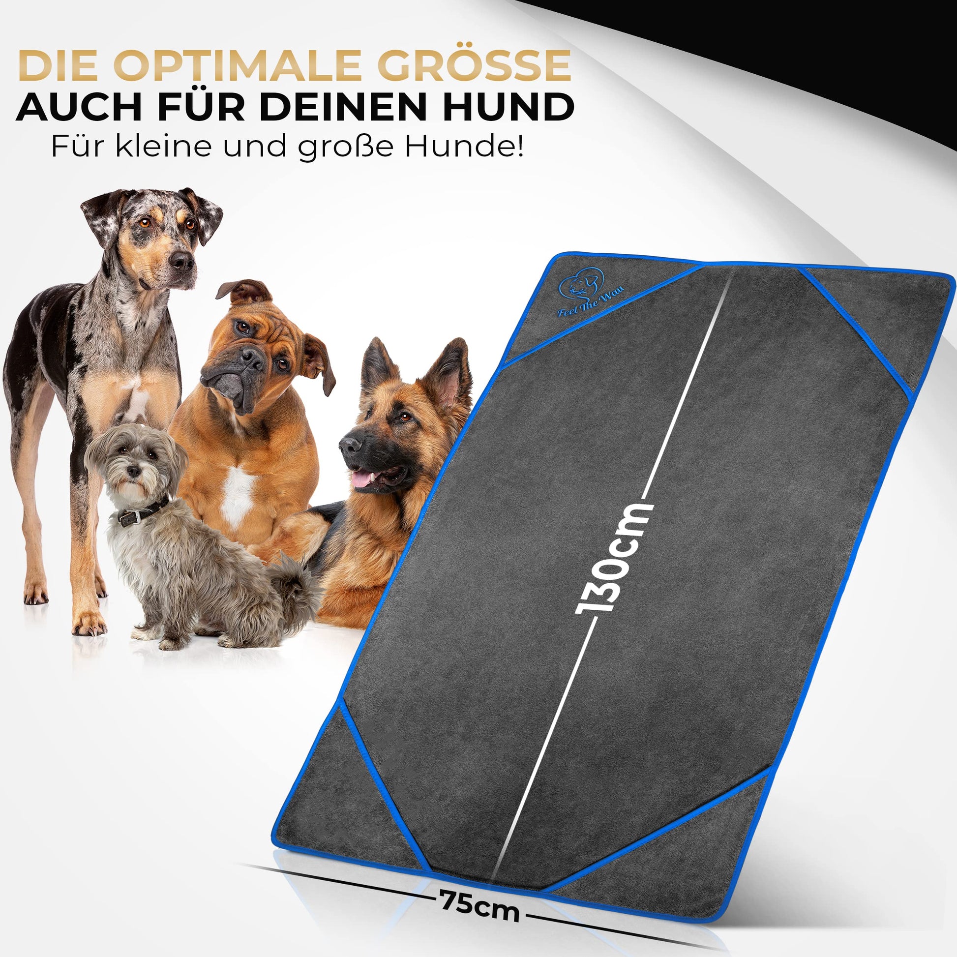 FeelTheWau Dog Towel extra absorbent - Dog towel for big dogs and small dogs - SUPER SOFT - Dog towel - Gift for dog owners (1 pack 130x75cm, Gray/Blue)