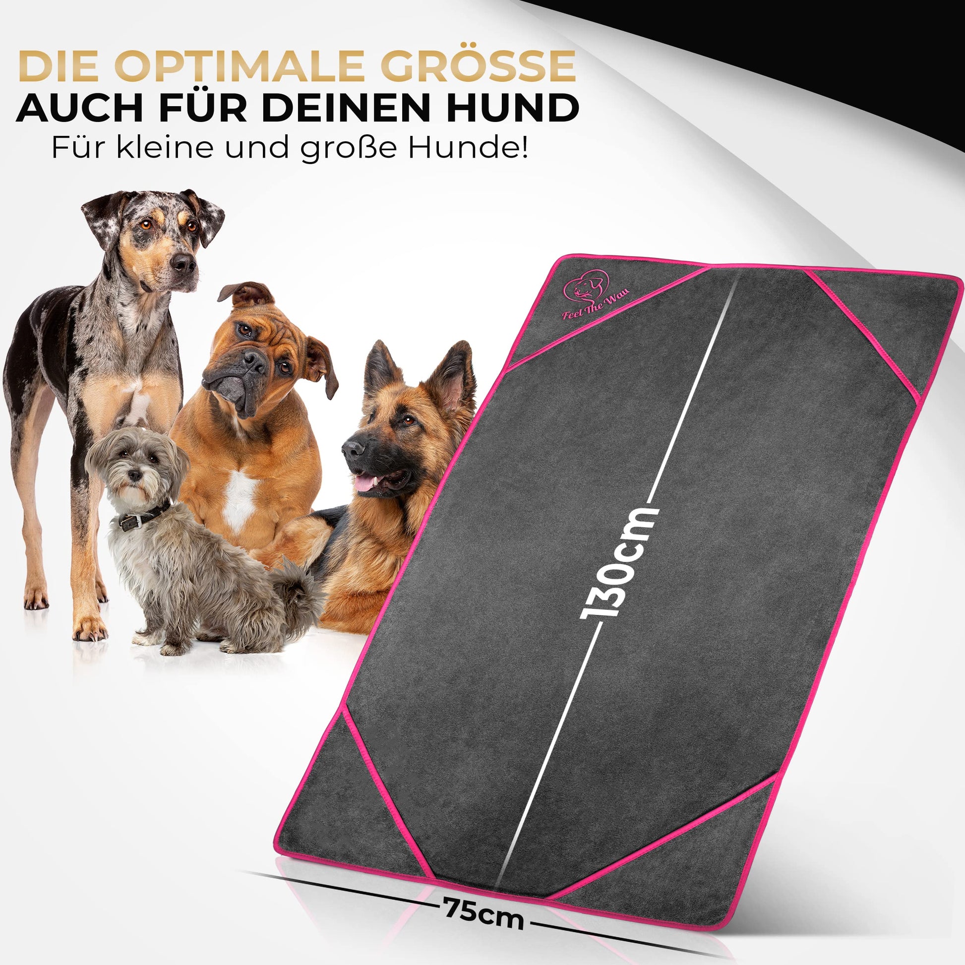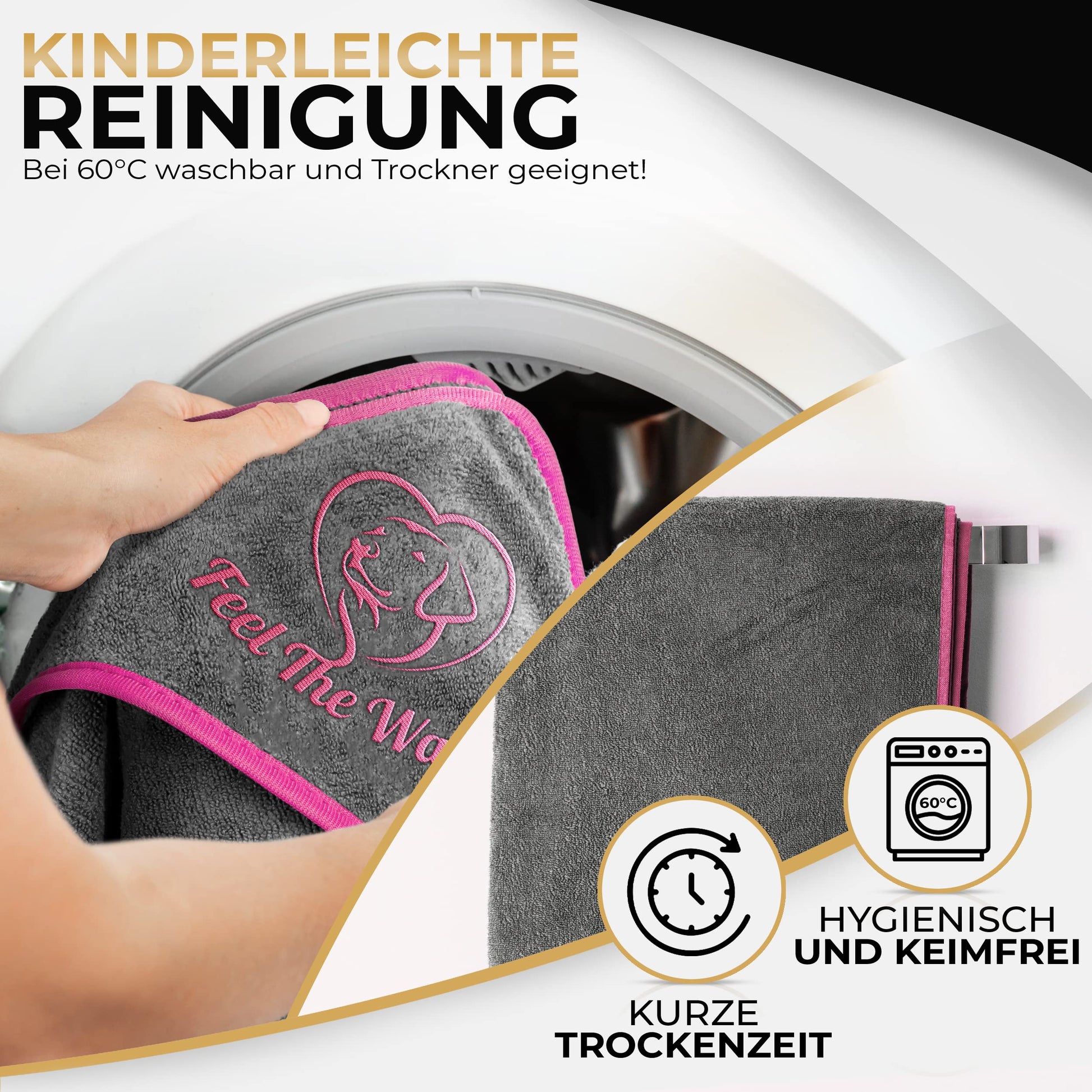FeelTheWau Dog Towel extra absorbent - Dog towel for large and small dogs - SOFT AND CUDDLY - Dog towel - Gift for dog owners (2 pack 130x75cm, Gray/Pink)