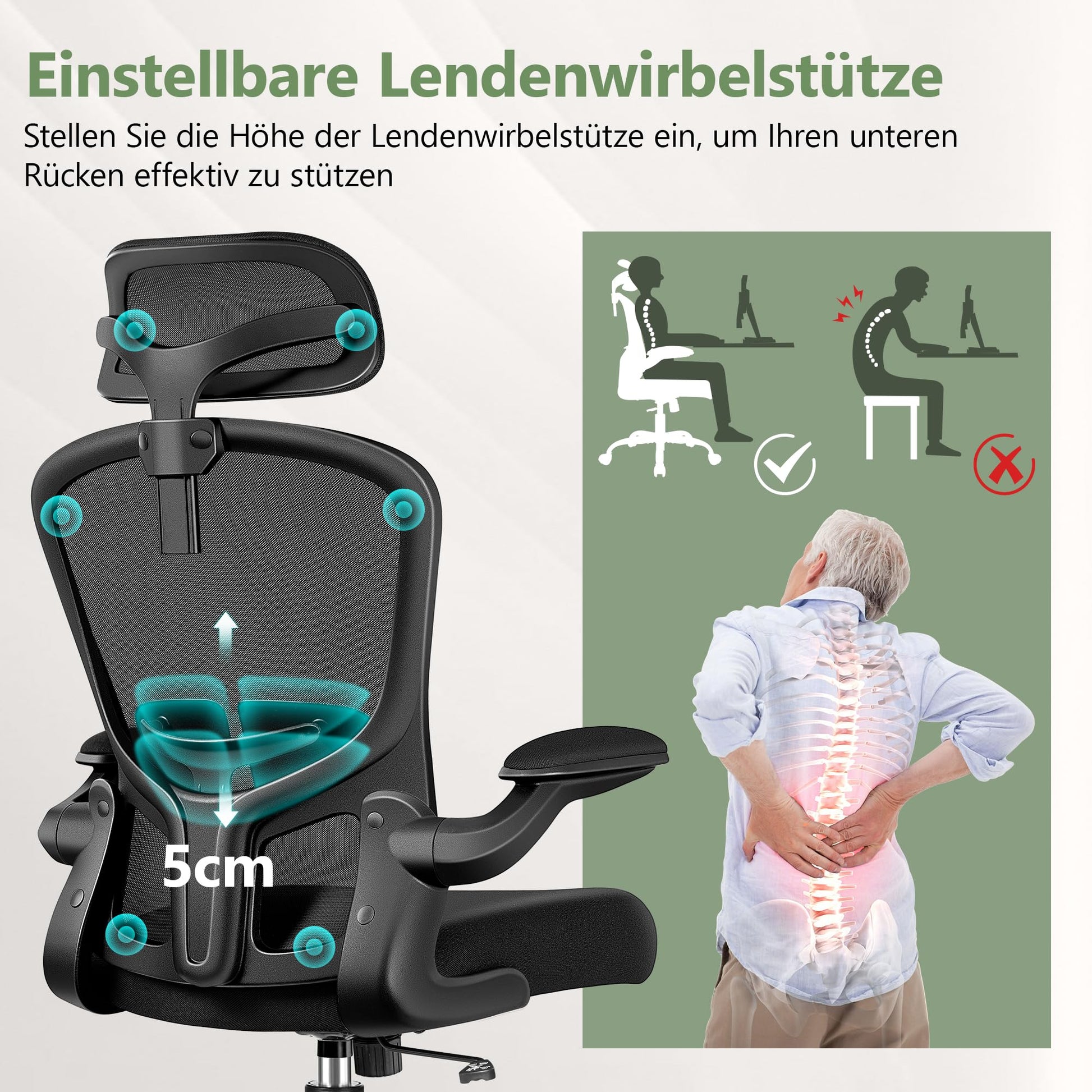 FelixKing Ergonomic Office Chair, Computer Chair, Adjustable Lumbar Support, 3D Headrest and Folding Armrests, Breathable Mesh Backrest, 300 lbs (Black)