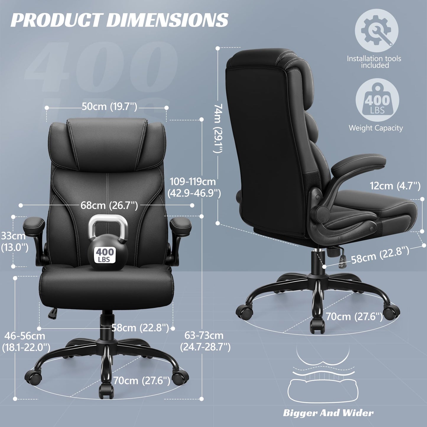 FelixKing office chair, Ergonomic Big Computer Office Chair, Executive Chair, Adjustable High Back Flip Armrests, Lumbar Support Swivel Computer Chair with Rocking (Matte Black)
