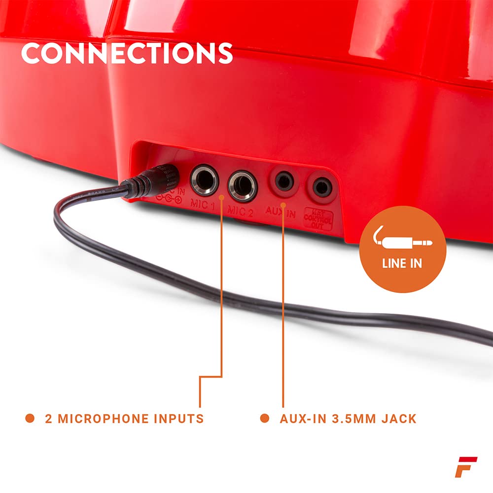 Fenton karaoke system with 2 microphones, stage mat with LEDs, Bluetooth, MP3 player, USB, karaoke machine with disco light effects - red suitable for all age groups with 2 handheld microphones and tablet holder.