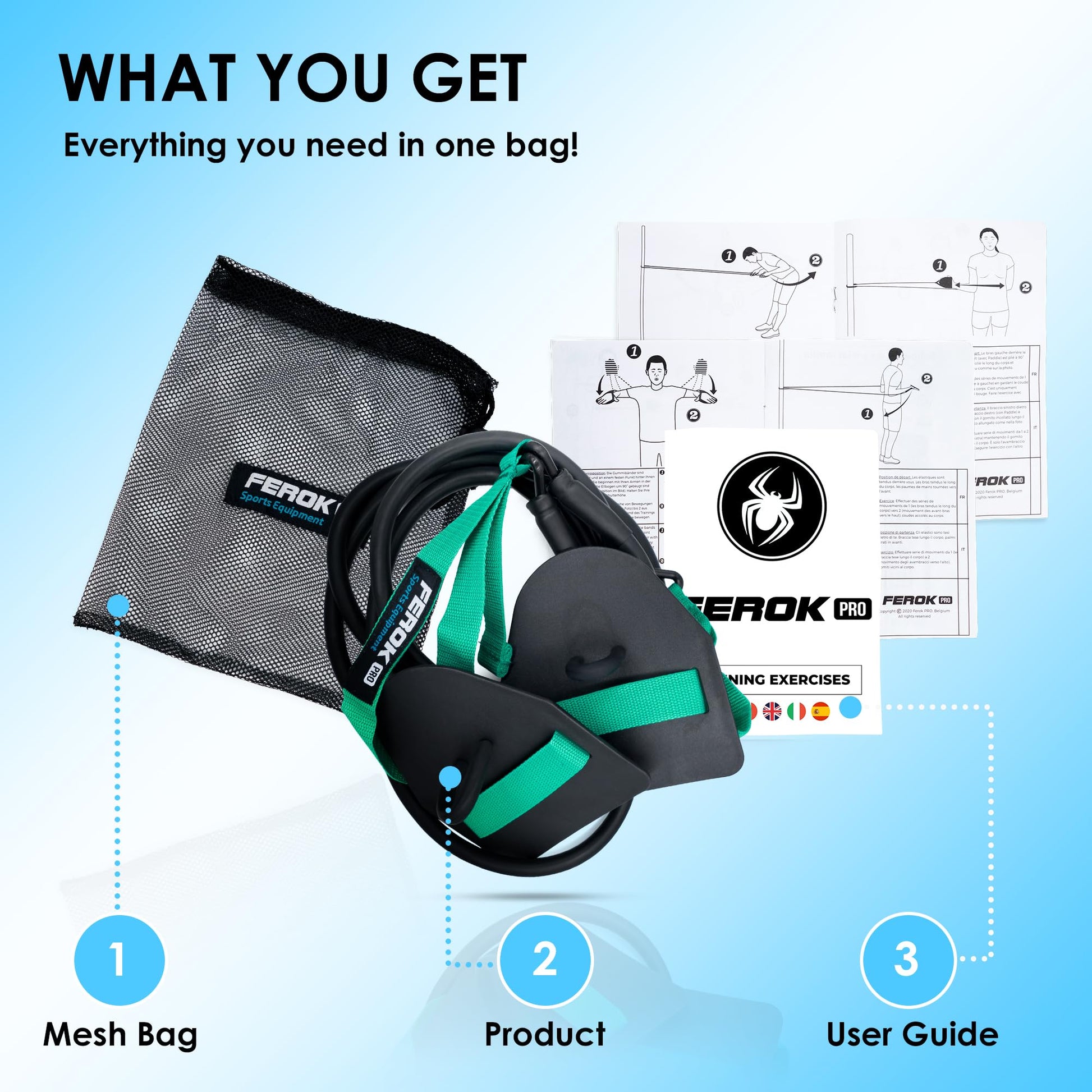 ["【Real Swimming Training Feeling】Our \"swim cords\" with paddles are designed to mimic the resistance and movement of swimming in the pool, targeting the swimmer's major muscles.","【Superior Comfort】Say goodbye to the chafing and discomfort of traditional \"swim cords\" with our specially designed paddles. An ergonomic design made specifically for swimmers ensures a comfortable training experience.","【Training Guide Included】Each product comes with a paper training booklet that offers carefully crafted swimming workout routines. A personal trainer at your fingertips!","【Easy & Universal Installation】Whether at home, in the office, or on the go, our \"swim cords\" can easily be attached to various anchor points, turning any location into a training zone.","【For All Skill Levels】Whether you're a beginner or a pro, these \"swim cords\" are the perfect tool for strengthening muscles and refining swimming techniques, no matter where you are."]