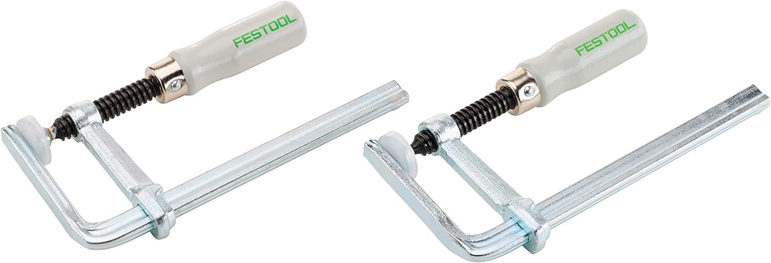 "Very robust and durable thanks to the all-steel construction","The handle is ergonomically shaped and made of wood","For securely fixing the guide rail and miter guide","Technical features: Jaw width 4.72 inches; Quantity: 2 pieces","Scope of delivery: Festool clamp FSZ 120"