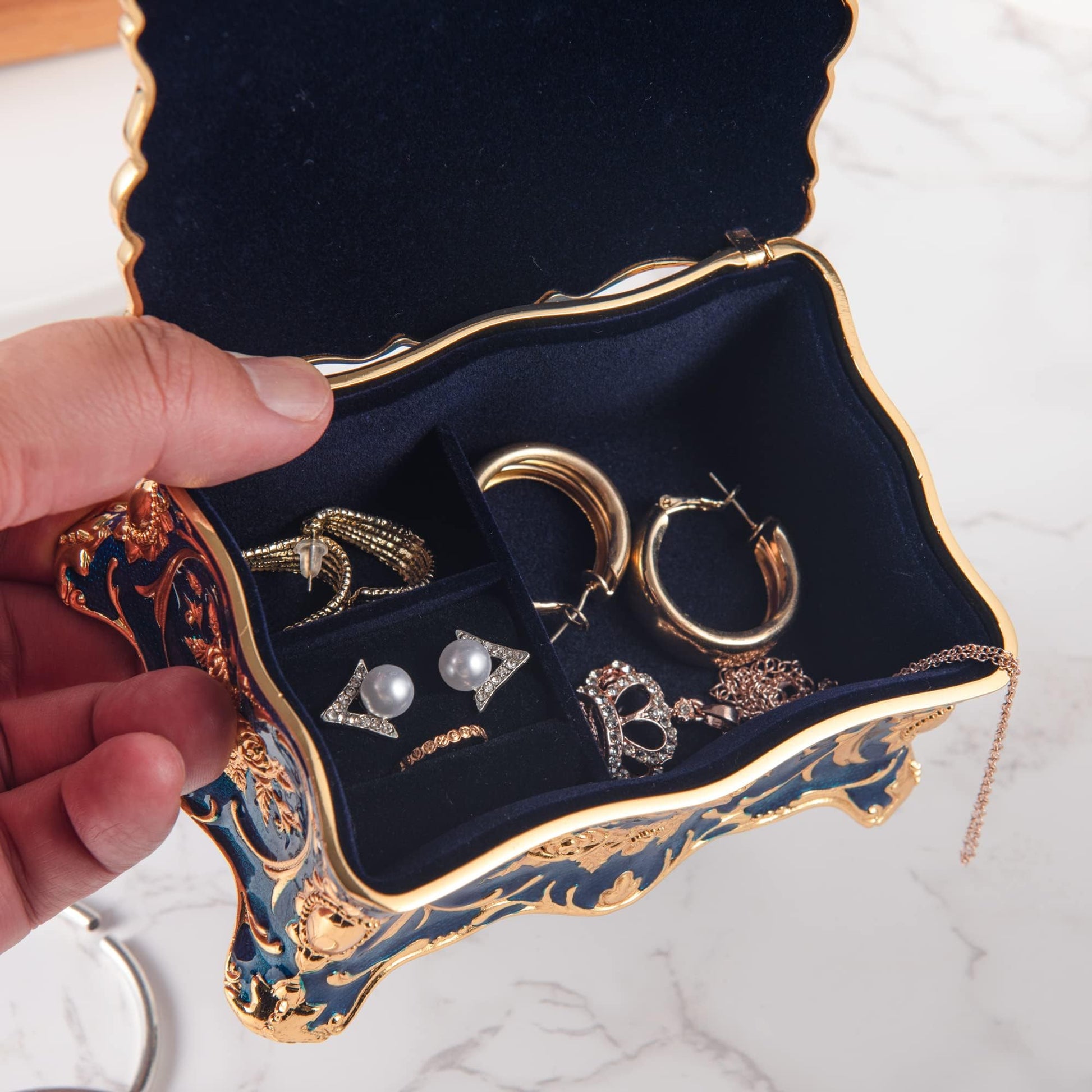 Feyarl Retro Jewelry Boxes Engraved Jewelry Case Storage Jewelry Box Mother's Day Gift for Jewelry Earrings Rings Blue.