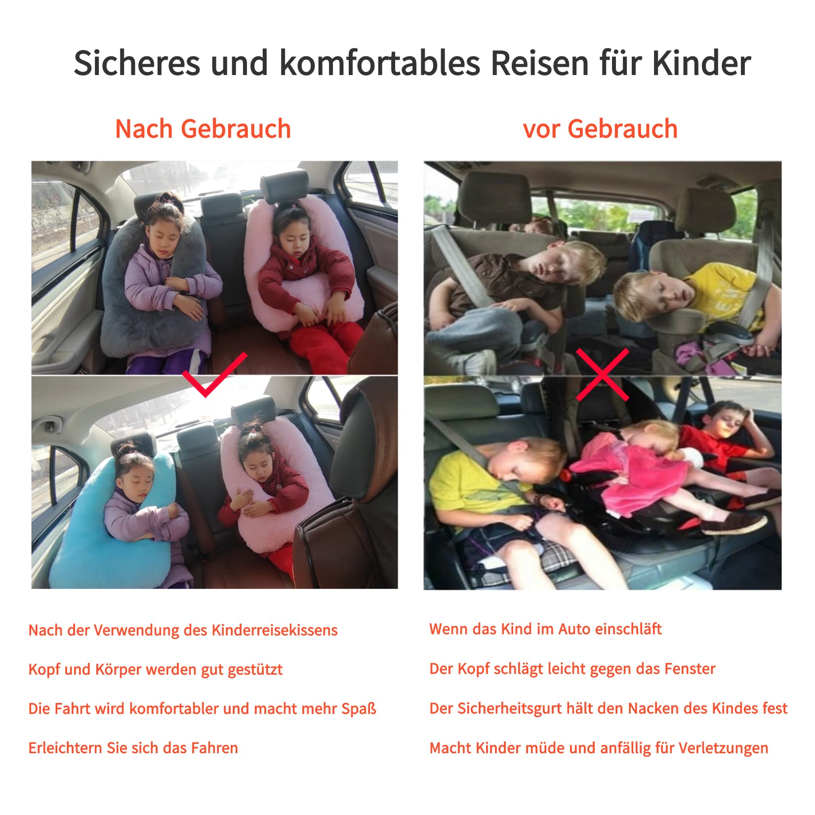 ["Car Pillow: The FHSGGP travel pillow is a brand new car sleeping pillow. The perfect combination of U-shaped design and seatbelt solves the safety problem for children and elderly during long journeys. Use it when your child is in the car. It supports every direction, maintains the correct sitting posture, and makes driving easier.", "The best gift for kids: Then we take a long car ride and the child falls asleep in the car. He rests his head on the seatbelt and looks uncomfortable. Children mostly fall asleep in the car with this travel pillow, their head doesn't fly around, which is great.", "Function: The best travel pillow, suitable for anyone traveling by car. Long trips can lead to fatigue. Due to sleep disturbances, children may be at risk. Travel pillows can solve these problems well, and when the child sleeps in the car, they are well supported in any direction regardless of the head tilt. The patented design of the FHSGGP travel pillow makes your journey more comfortable and safe.", "Perfect for road trips: Let the kids feel comfortable throughout the whole process. They can sleep well. It is very comfortable and has a seatbelt hook to keep it in place. It looks very comfortable in the car. And so cute. Use it when your child is in the car. Every direction is supported to make driving easier.", "Material: The travel pillow is made of rabbit hair fabric and filled with enough PP cotton, which is ergonomic, soft, and comfortable, allowing you to lie down, lean, hug, and sit without getting tired. There are a variety of colors to choose from, enriching your beautiful life, beautiful and practical.", "Product packaging: The travel pillow is vacuum compressed for packaging. Take the product out of the packaging after receiving it and gently pat it. Let it expand naturally for 12 hours, and it will return to its original shape."]