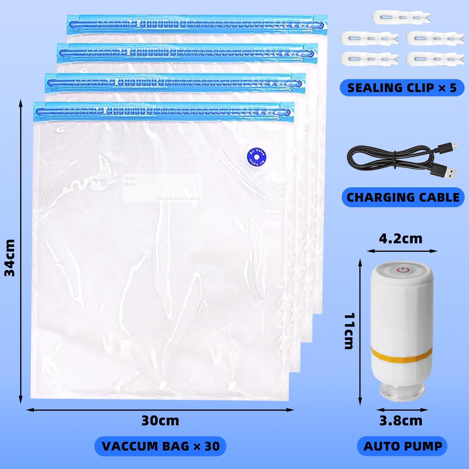 Filament Vacuum Bag Kit with Automatic Pump: 3D printing filament storage vacuum kit with autopump and sealing clips, 30 storage bags 34 * 30cm for 1.75mm 3D printer filaments.