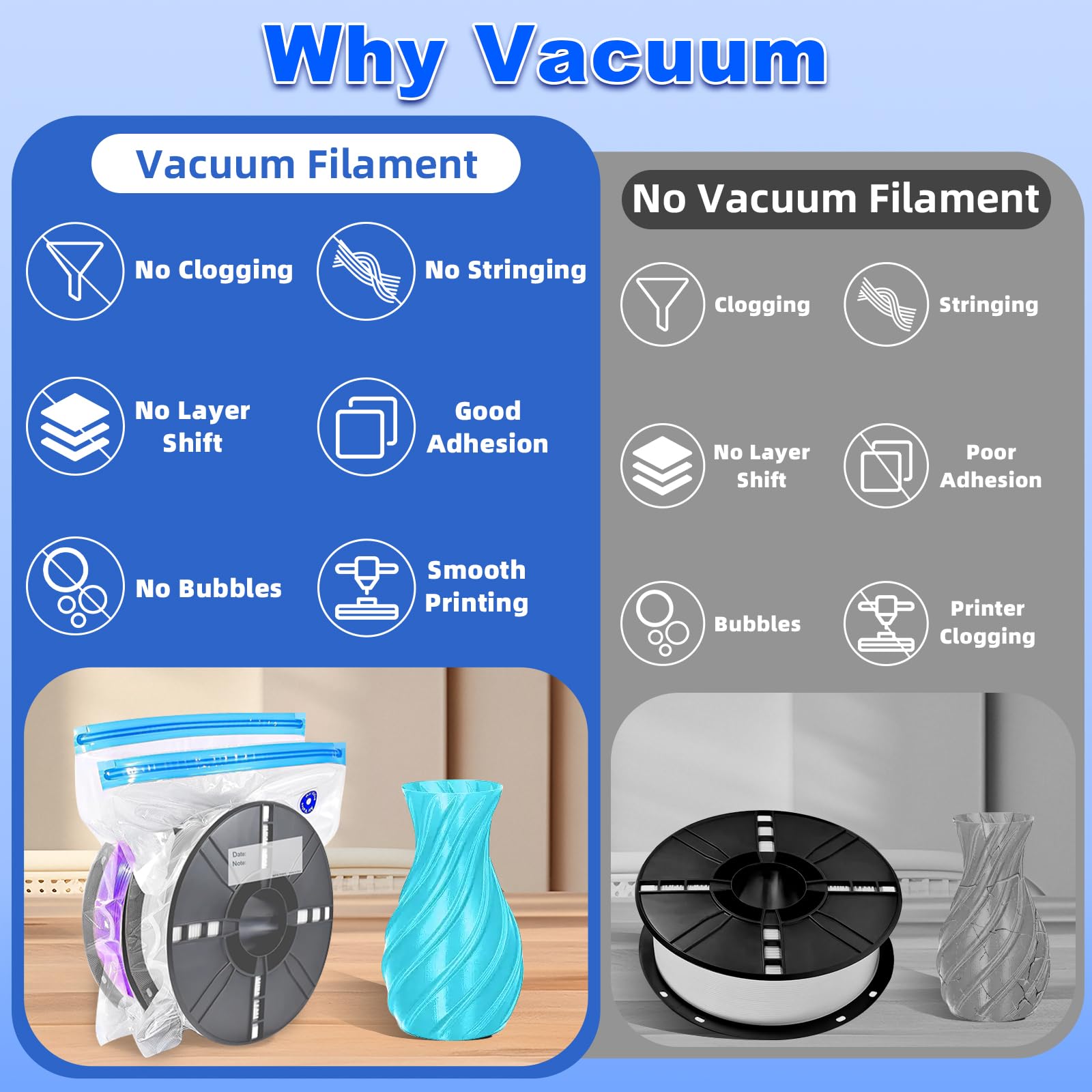 ["High-quality Filament Bags】Reusable vacuum bags prevent filament from tearing during the vacuum process, improve sealing performance, and extend filament storage time.",