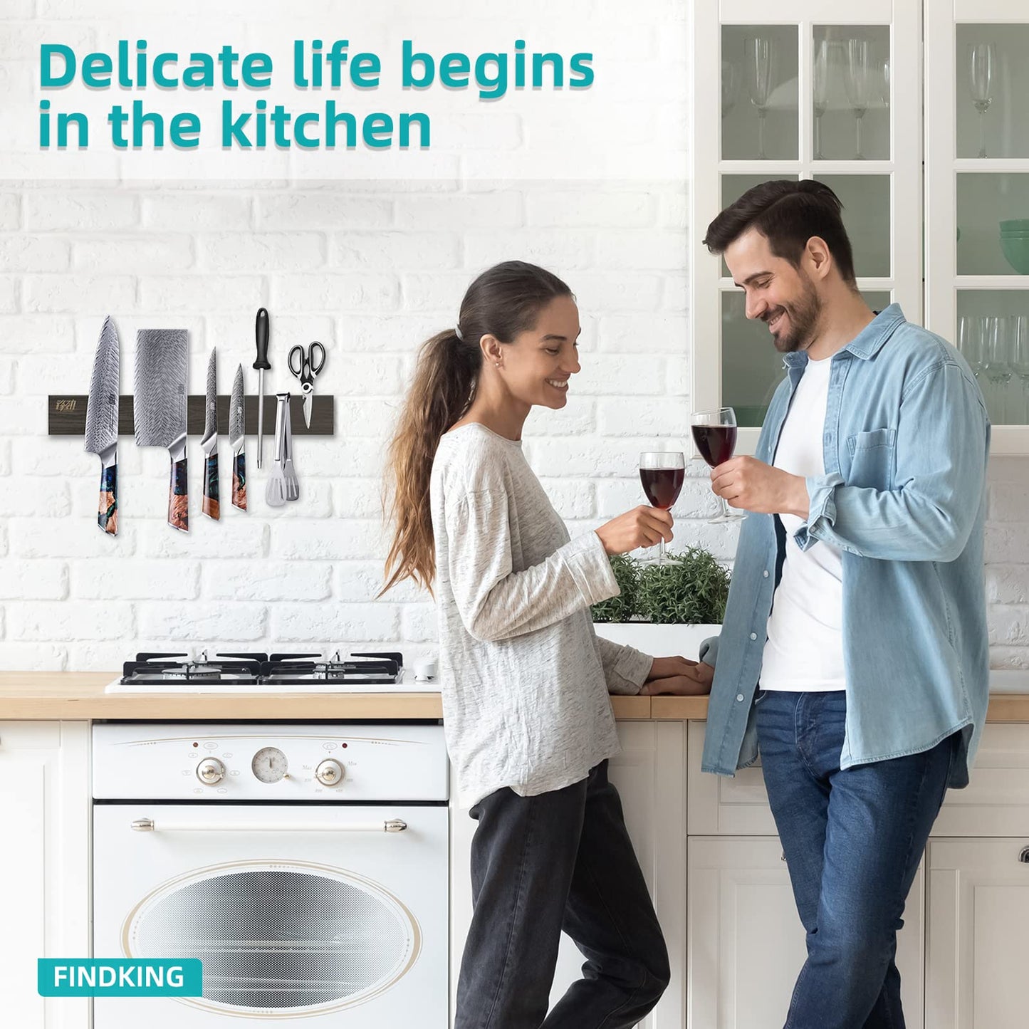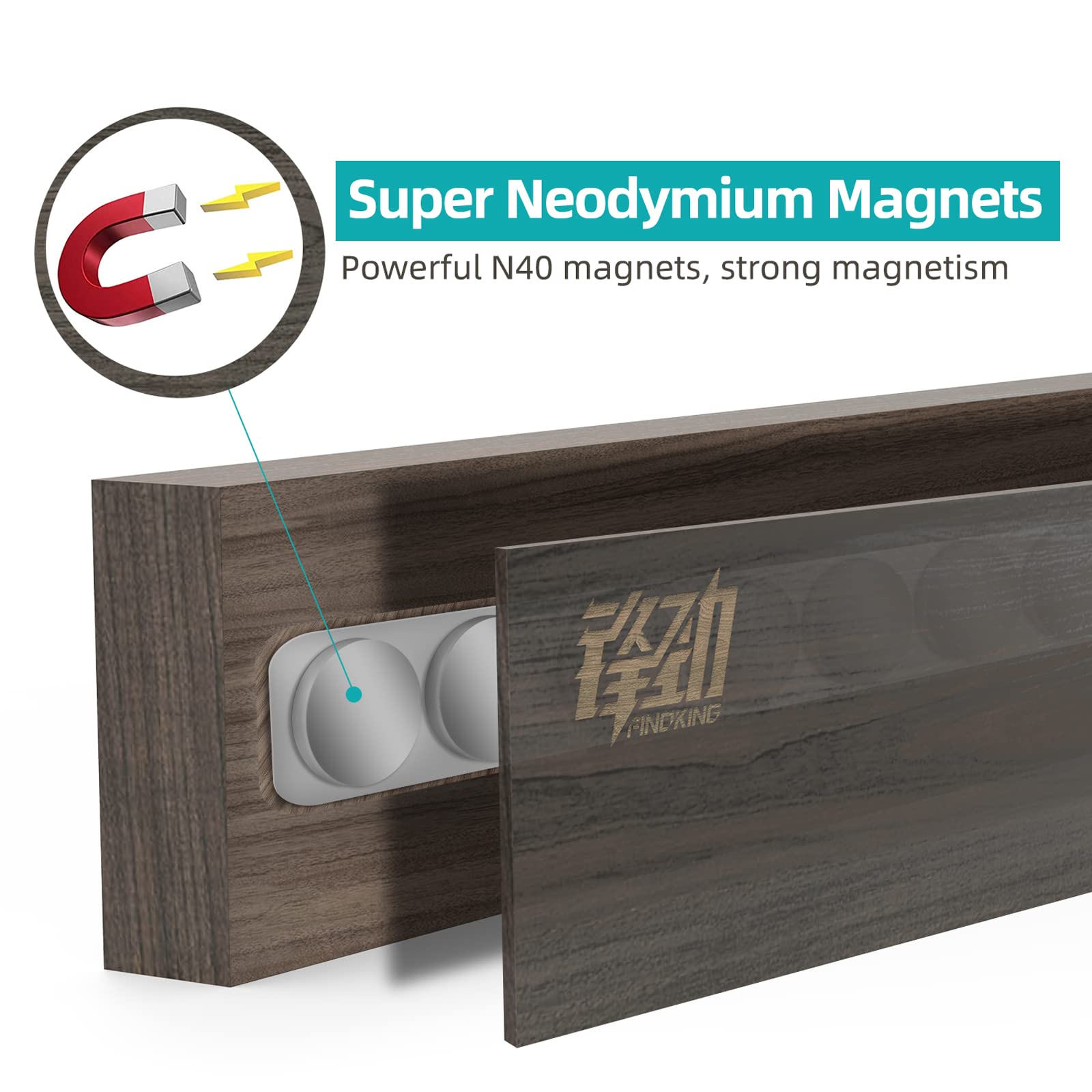 ["DESIGN FOCUS - The focus of the Findking magnetic knife strip is to offer our customers a fresh and new way to proudly display their Findking knives. Designed and developed to fit into any living or kitchen space, the sleek design provides a very modern, professional, and organized aesthetic. As an added feature, the handles are exposed so all Findking kitchen knives can be easily removed and attached.","DIMENSIONS - Findking is proud to offer our magnetic knife strip in three different sizes to accommodate every level of \"knife enthusiast.\" The \"large\" strip is 46 cm in length. The \"medium\" strip is 40 cm (approx. 16 inches) The \"small\" strip is 30 cm (approx. 12 inches). The width is 6 cm (2.3 inches) allowing for installation under any overhead cabinets.","SEAMLESS ASH WOOD CRAFTED - The Findking magnetic knife strip is made of ash wood. Ash wood is known for its quality and rustic beauty. This wood is extremely durable and water and scratch resistant. The durability, versatility, and rustic beauty allow the Findking magnetic knife strip to function flawlessly for years.","THE MAGNET - The magnet is strong enough to hold the knife. Please be careful when attaching a knife to the magnetic strip. When removing the knife, simply grab the handle and pull it down until the knife is completely detached from the magnetic strip. This magnetic knife strip will last for years and will always be a great addition to your kitchen.","INSTALLATION OPTIONS - The installation methods developed by the Findking design team allow for versatility and precision. Precision is provided by the drilling template, important for keeping the magnetic strip straight. Versatility lies in the two different methods for properly mounting your magnetic strip to any wall. The installation offers two different types of fastening methods (3M tape or screws)."]