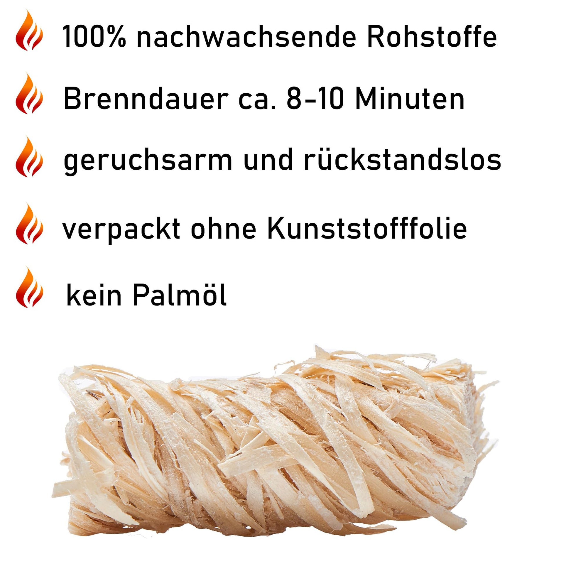 ["π₯ Quick Ignition - FINNAS firelighters made of wood wool and wax ensure a safe, fast, and clean flame in the fireplace, grill, smoker, oven, fire pit, or fire bowl. The natural fire starters are odorless, leave barely any ash, and provide a reliable ignition aid for wood, charcoal, and briquettes. Ideal for indoor and outdoor use, conveniently packaged, ready to use anytime, and easy to handle."