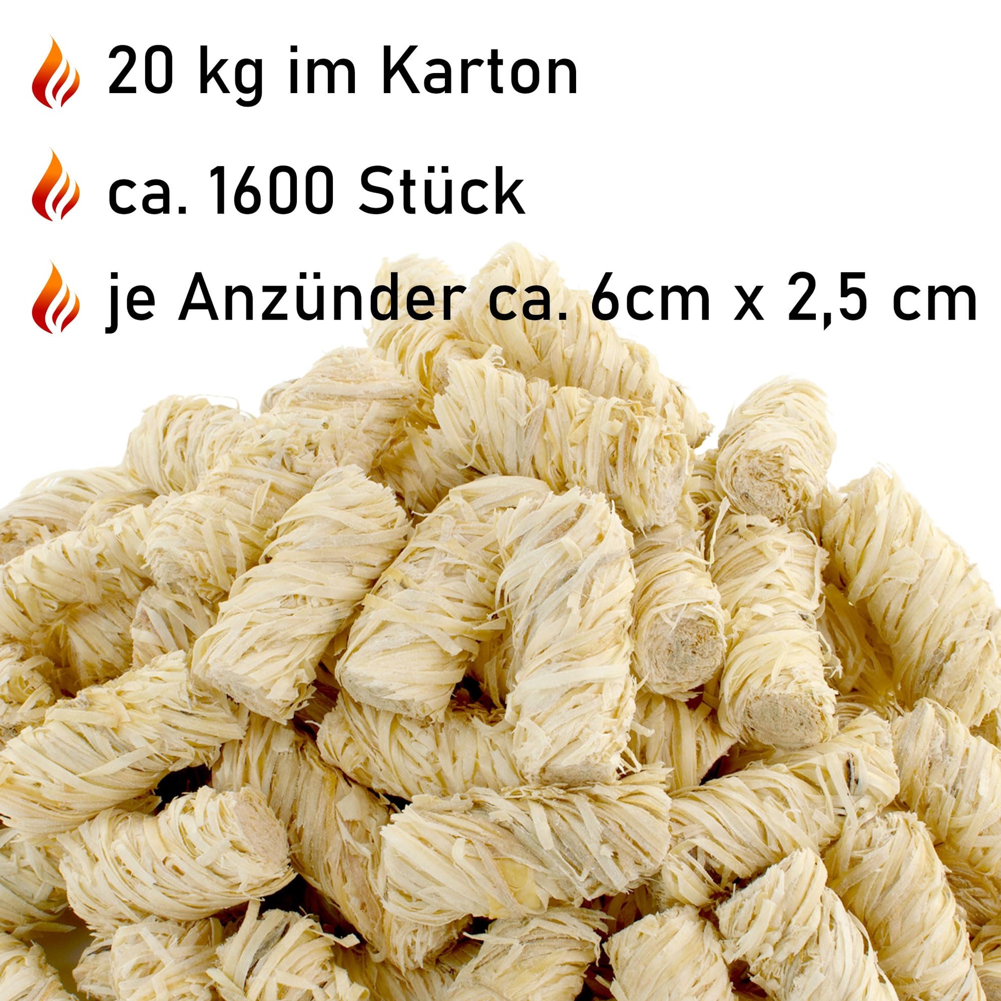 "π¦ Stock - 20 kg of FINNAS firelighters correspond to approximately 1600 pieces in a practical storage box. Ideal for heavy users who regularly enjoy fireplace evenings, grill parties, or outdoor fires. Efficient and reliable for households, gastronomy, campsites, or clubs. The sturdy packaging protects against moisture, facilitates storage, and makes the wood wool lighters ready for use all year round and particularly durable."]