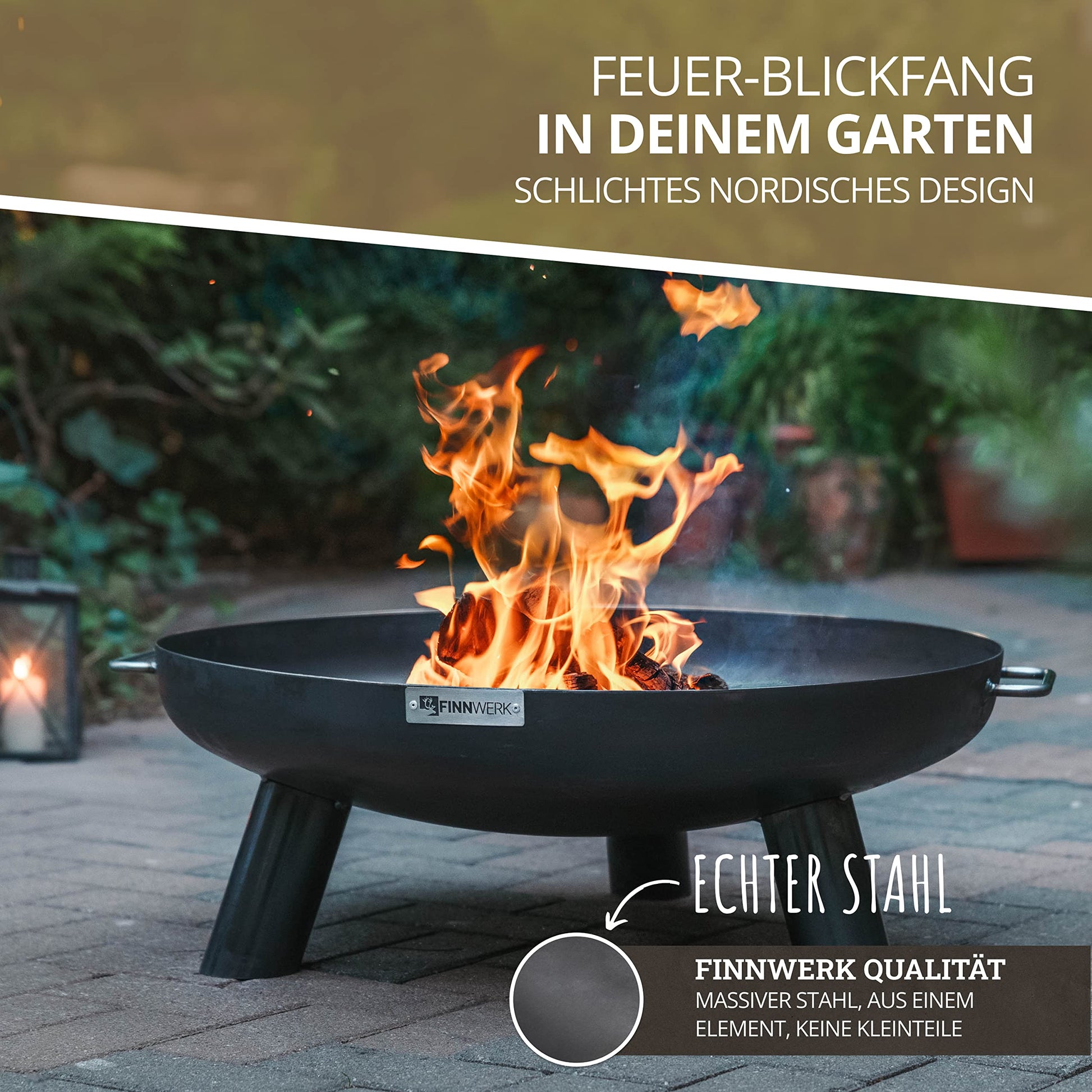 ["🔥SIMPLE SCANDINAVIAN DESIGN - Enhance your garden with a Nordic eye-catcher: Our fire bowl transforms small and large green spaces, terraces, and gardens into wonderfully cozy fire oases. Enjoy time in nature - all year round!", "🔥 ENJOY WARM & DELICIOUS - Feel the heat of real flames on cold days or in long summer nights. Cozy hours are rounded off with smoky delicious food from the swinging grill, flame salmon board, or just rustic as campfire bread. So tasty!", "🔥 EXTRA STURDY QUALITY - This fire pit withstands wind & weather: robust steel serves as a dry, wind-protected base for crackling fires and blazing flames. Two side handles make the fire bowl the perfect companion for camping or outings.", "🔥 MATCHING ACCESSORIES - Trust 100% in high-quality materials for all our products. Matching the HARRI fire bowl, we offer you the right accessories. From fire bowl covers to flame salmon boards: Every outdoor 💚 will beat faster.", "🔥 SCANDINAVIAN FEELING - A cozy evening, the smoky smell of the campfire, flames dancing in the darkness. What could be more beautiful? Exactly this feeling, the connection with the elements of the great outdoors, is what we want to bring to you and every customer.", "🔥 PERSONAL SUPPORT - Your satisfaction is the most important thing for us! From our Finnwerk headquarters in Freiburg, we are here to help you with any questions or if you need assistance with the proper use of your new fire bowl at any time."]