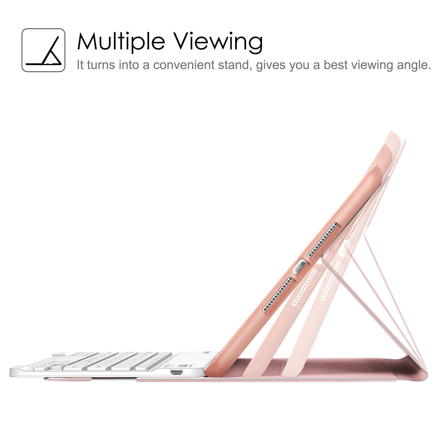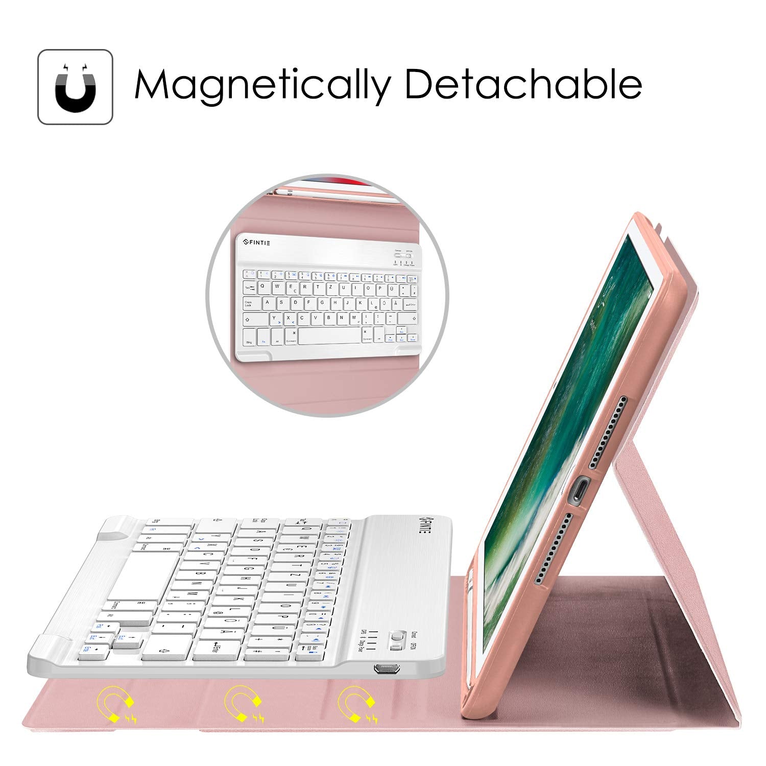 FINTIE Keyboard Case for iPad 9.7 2018 (6th Gen), Soft TPU Back Cover Keyboard Case with built-in Pencil Holder, Magnetic Detachable QWERTZ Bluetooth Keyboard, Rose Gold