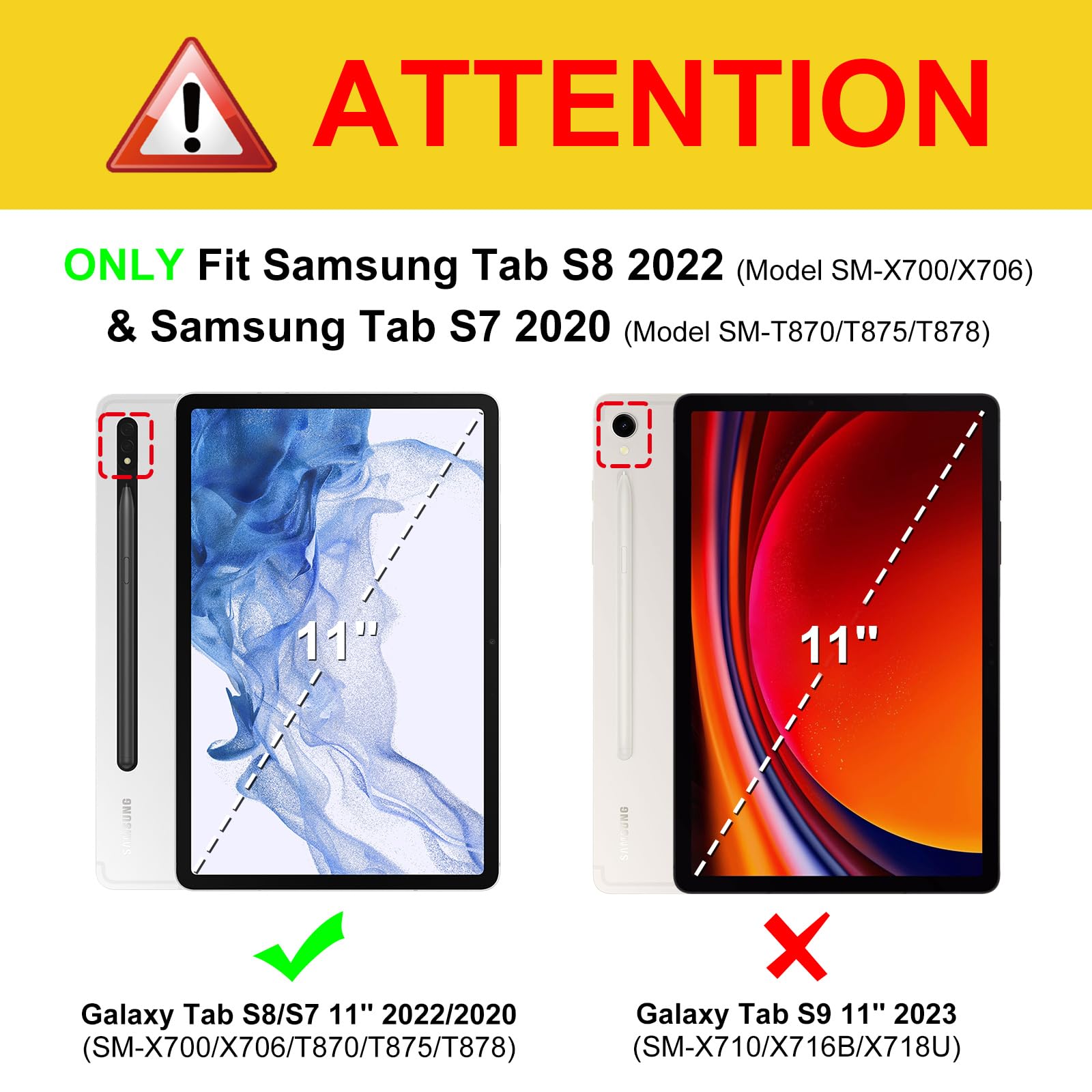 "Specifically designed for Samsung Galaxy Tab S8 11 inch 2022 (models: SM-X700 / SM-X706) & Tab S7 11 inch 2020 (models: SM-T870 / SM-T875). NOT suitable for other Samsung Galaxy Tablet models. Please check the tablet model number before purchasing.