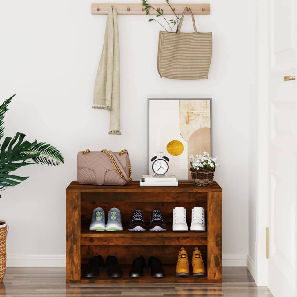 FIRBNUS shoe rack smoked oak 75x35x45 cm wood composite shoe organizer shoe storage shoe cabinet wood shoe rack wood cabinet for entryway hallway ample storage practical & elegant