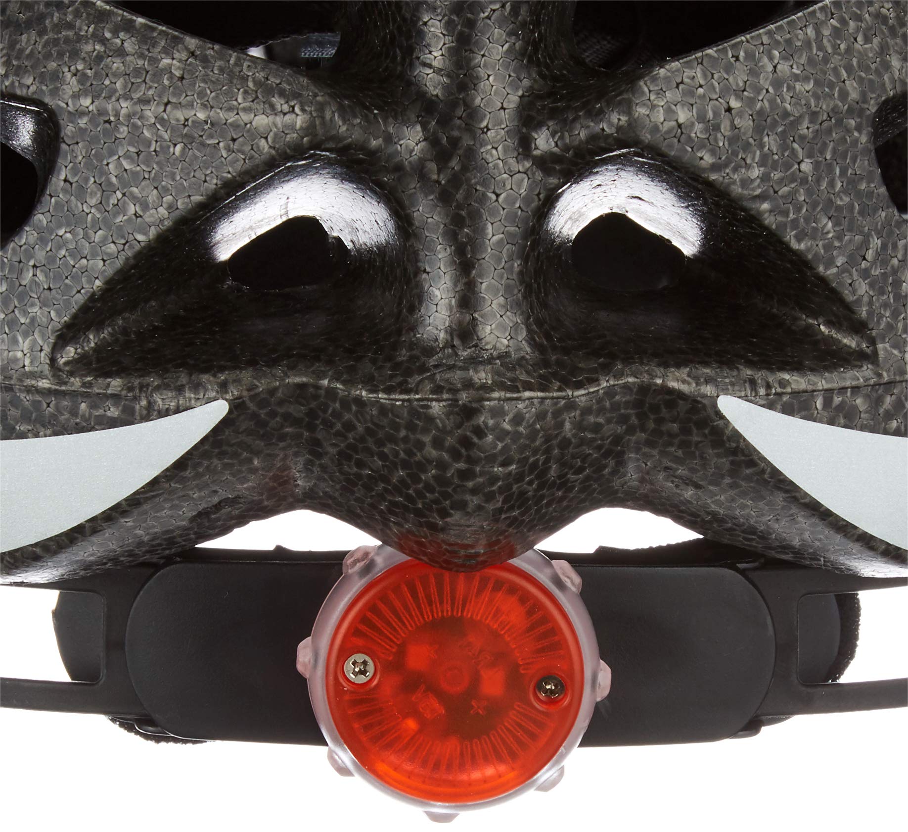"VISIBILITY: The helmet's integrated rear light has 3 light functions and reflective strips woven into the helmet straps for optimal visibility in darkness",