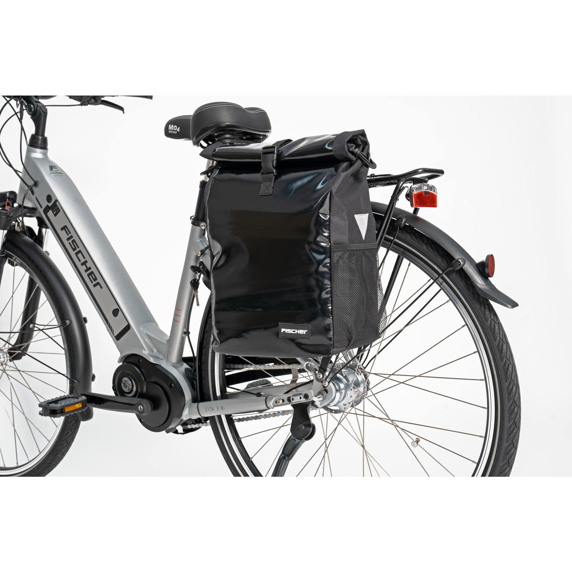 FISCHER Bike Rack Bag Courier, bike bag, messenger bag, reflector, 18 liters, water resistant, black