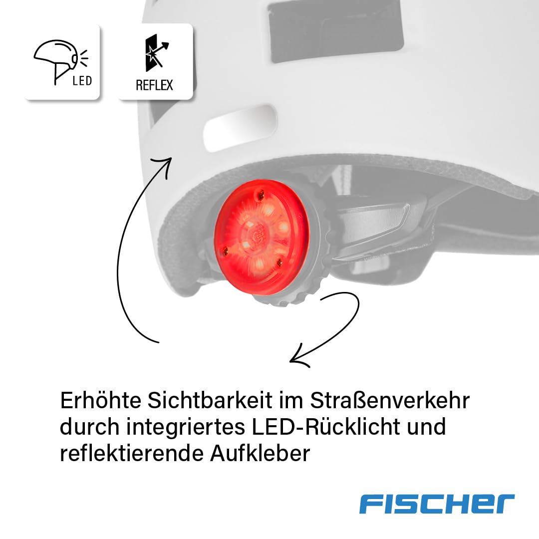 ["BMX HELMET: The helmet is size S/M. Fits head circumference of 54 to 58 cm.","ADJUSTMENT: The helmet can be optimally adjusted to the head thanks to the adjustable inner ring system","USE: Ideal for cycling, inline skating, skateboarding, and roller skating","VENTILATION: Good ventilation with 11 air inlets","VISIBILITY: Integrated LED rear light for added visibility and reflective stickers","COMFORT: Ratchet closure with fine adjustment","DESIGN: Cool design with high-quality matte surface"]
