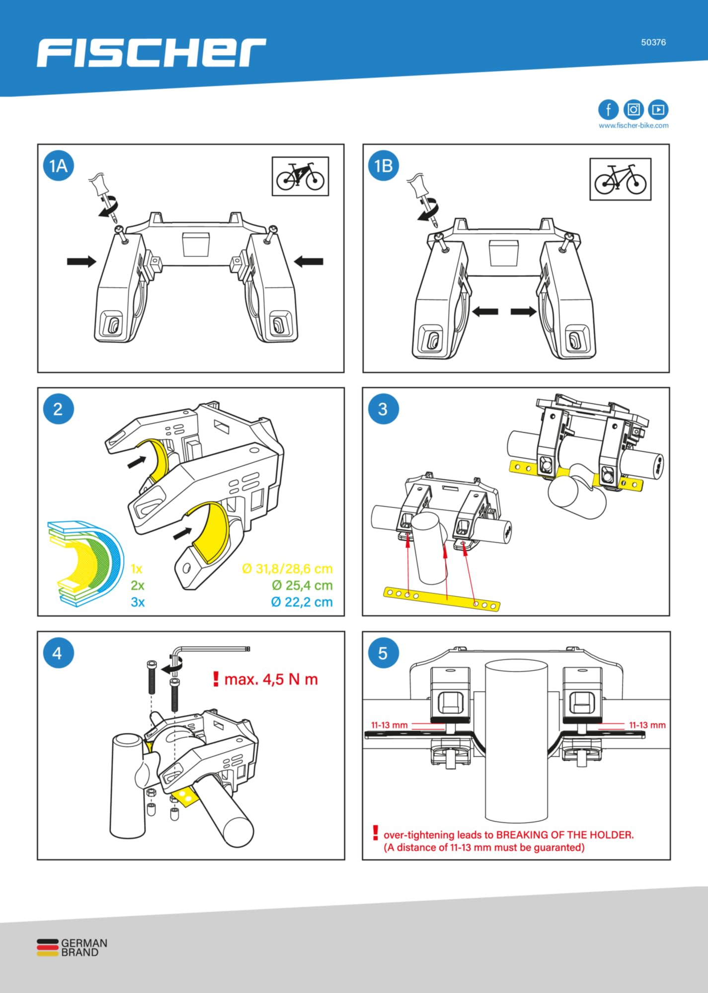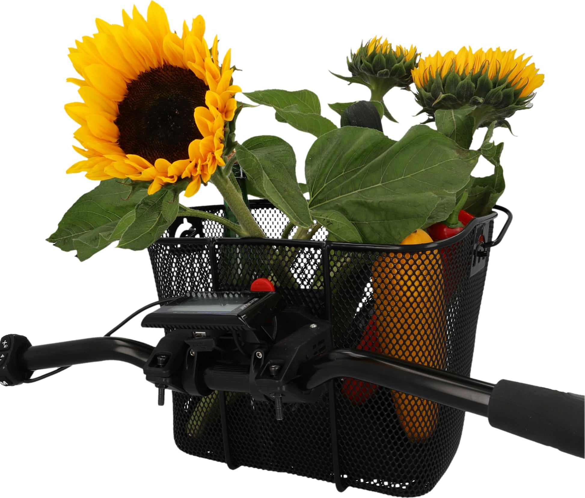 ["For e-bikes and all conventional bicycles","Bracket is adjustable","With quick-release for instant removal at the push of a button from the handlebars","Very tightly woven, prevents objects from falling out","Load capacity 11 lbs"]